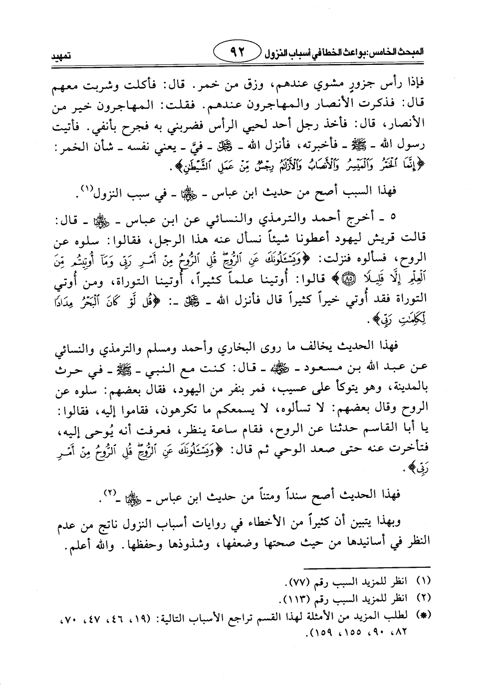 وبهذا يتبين أن كثيراً من الأخطاء في روايات أسباب النزول ناتج من عدم النظر في أسانيدها من حيث صحتها وضعفها، وشذوذها وحفظها. واللَّه أعلم.