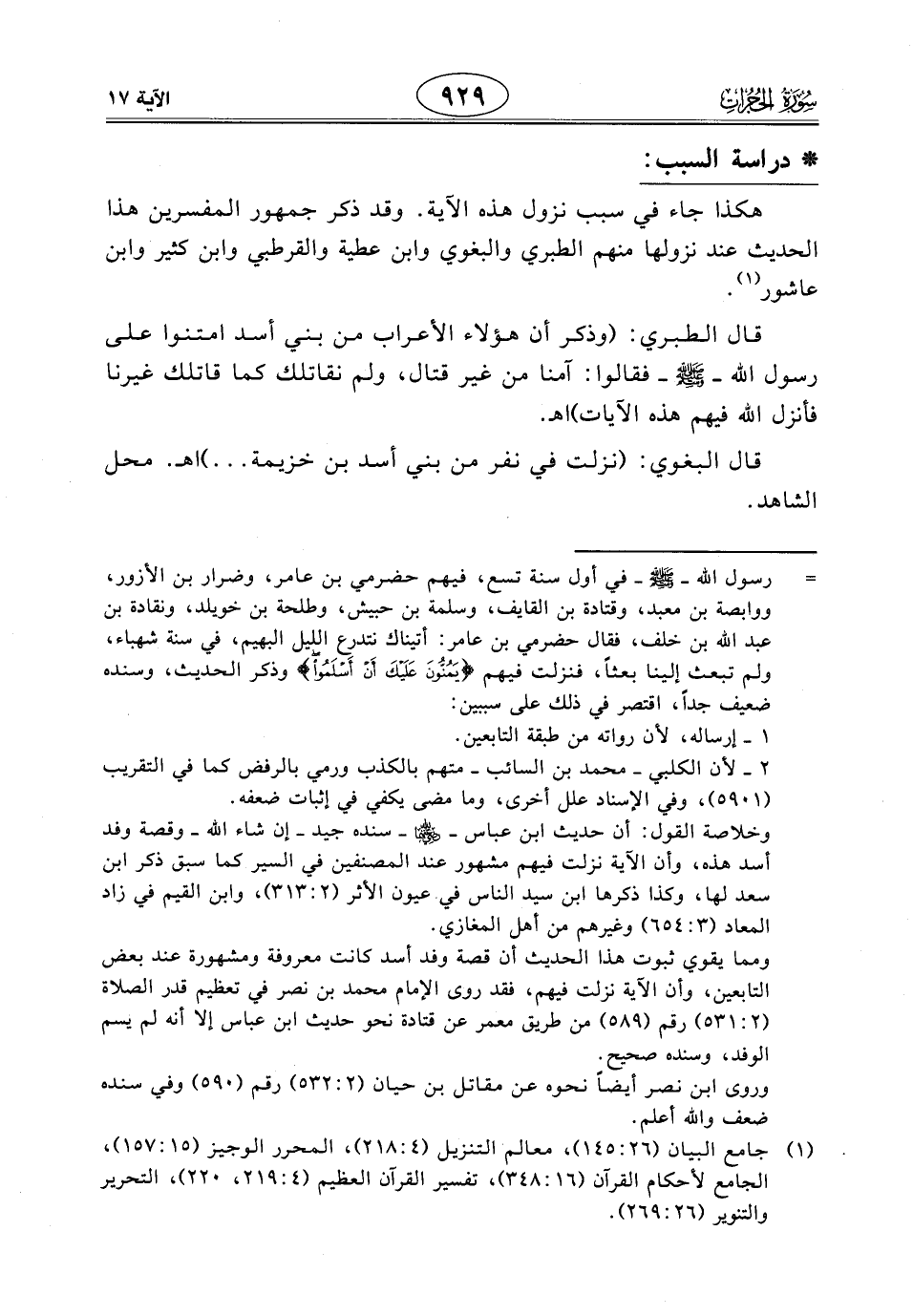 قال البغوي: (نزلت في نفر من بني أسد بن خزيمة ... ) اهـ. محل الشاهد.