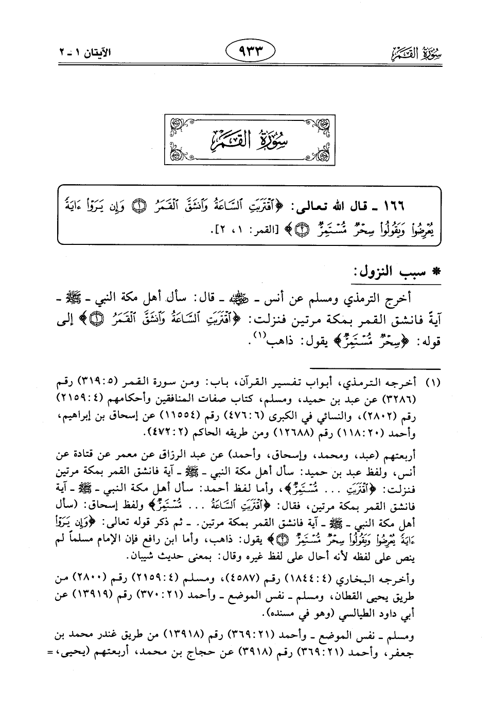 166 - قال الله تعالى: (اقْتَرَبَتِ السَّاعَةُ وَانْشَقَّ الْقَمَرُ (1) وَإِنْ يَرَوْا آيَةً يُعْرِضُوا وَيَقُولُوا سِحْرٌ مُسْتَمِرٌّ (2)
