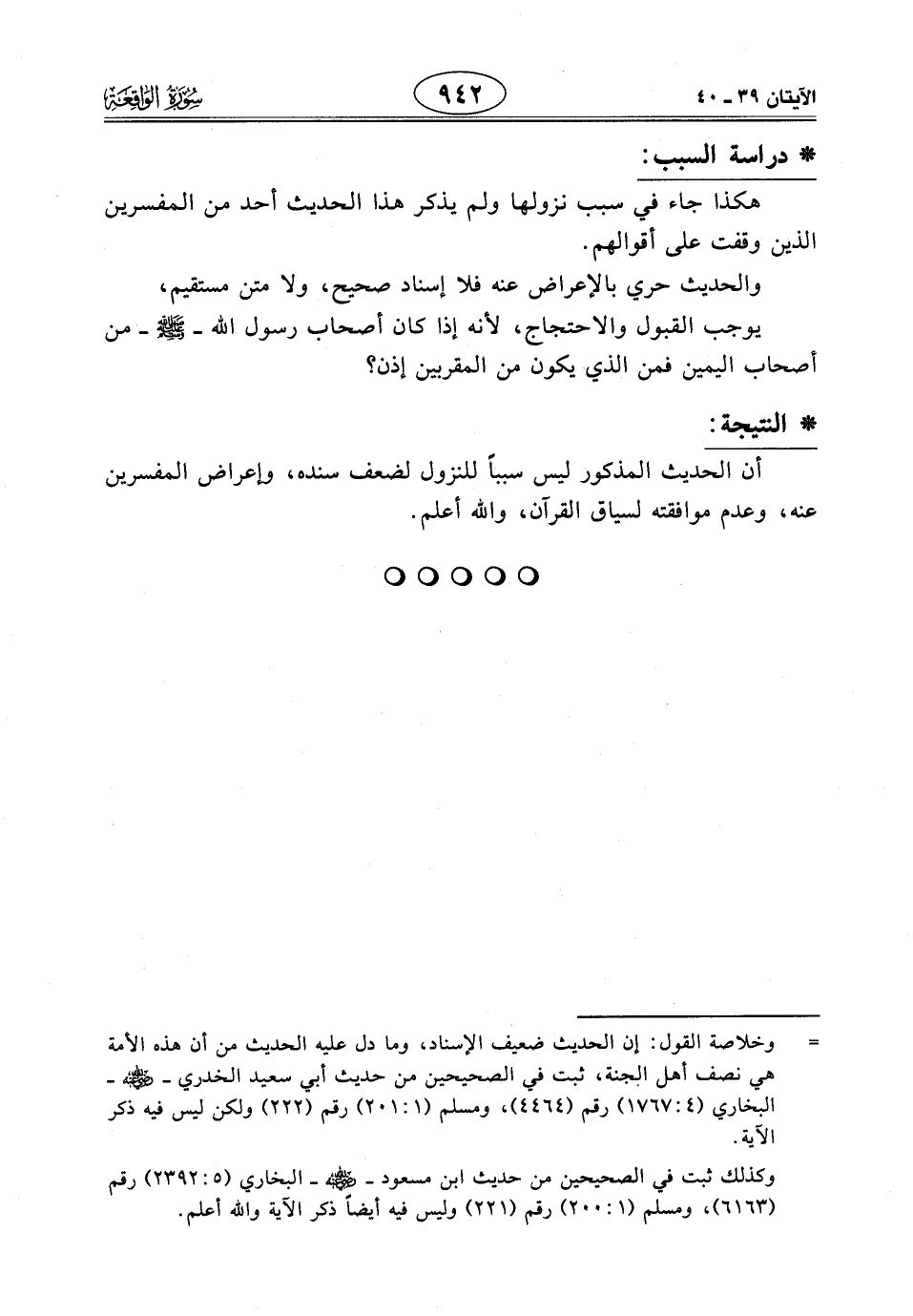 يوجب القبول والاحتجاج، لأنه إذا كان أصحاب رسول الله - صَلَّى اللَّهُ عَلَيْهِ وَسَلَّمَ - من أصحاب اليمين فمن الذي يكون من المقربين إذن؟