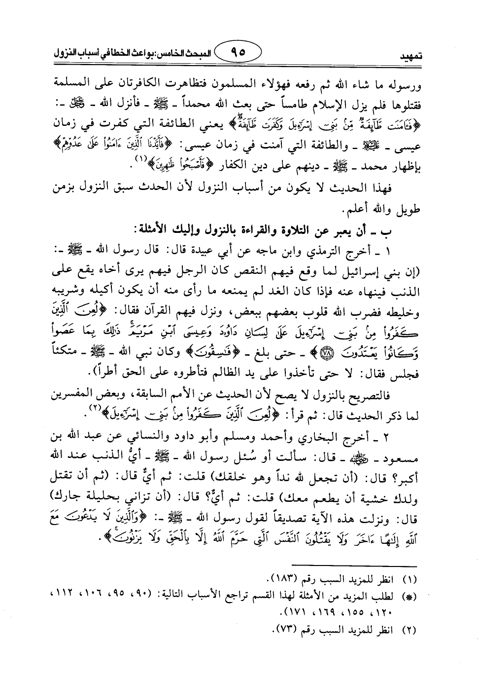 فالتصريح بالنزول لا يصح لأن الحديث عن الأمم السابقة، وبعض المفسرين لما ذكر الحديث قال: ثم قرأ: (لُعِنَ الَّذِينَ كَفَرُوا مِنْ بَنِي إِسْرَائِيلَ).