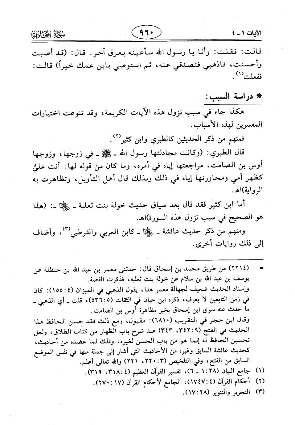 أما ابن كثير فقد قال بعد سياق حديث خولة بنت ثعلبة - رضي الله عنها -: (هذا هو الصحيح في سبب نزول هذه السورة) اهـ.