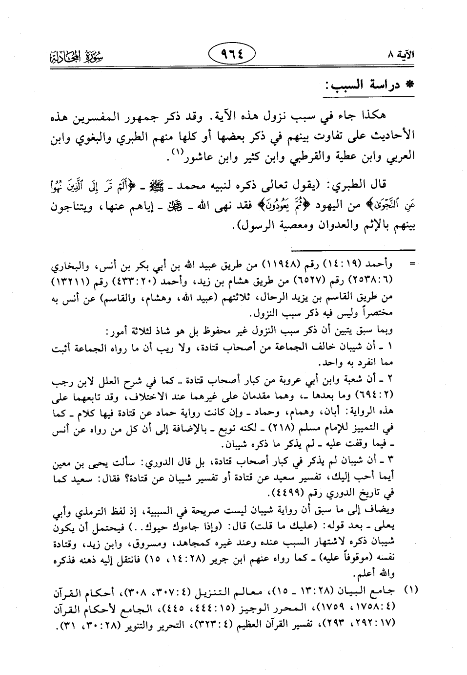 قال الطبري: (يقول تعالى ذكره لنبيه محمد - صَلَّى اللَّهُ عَلَيْهِ وَسَلَّمَ - (أَلَمْ تَرَ إِلَى الَّذِينَ نُهُوا عَنِ النَّجْوَى) من اليهود (ثُمَّ يَعُودُونَ) فقد نهى الله - عَزَّ وَجَلَّ - إياهم عنها، ويتناجون بينهم بالإثم والعدوان ومعصية الرسول).