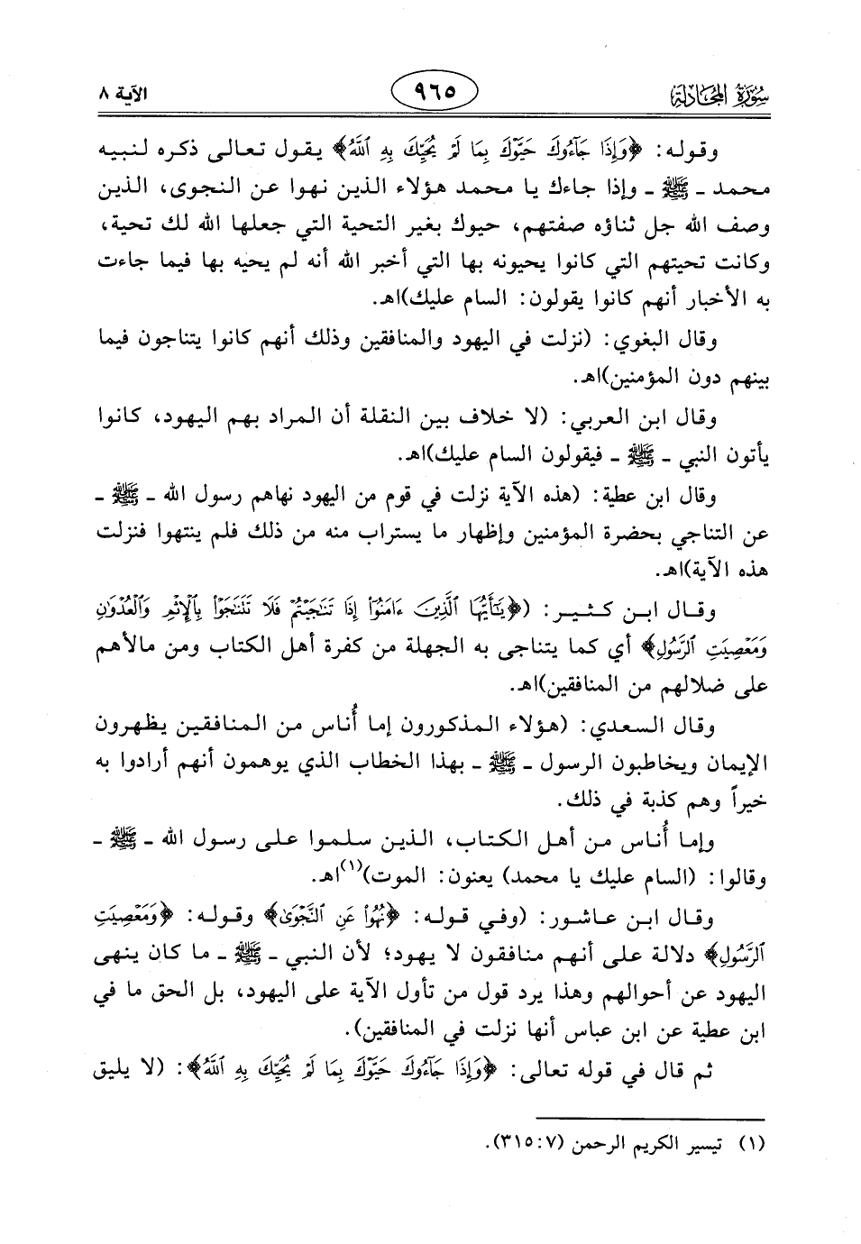 وقال ابن العربي: (لا خلاف بين النقلة أن المراد بهم اليهود، كانوا يأتون النبي - صَلَّى اللَّهُ عَلَيْهِ وَسَلَّمَ - فيقولون السام عليك) اهـ.