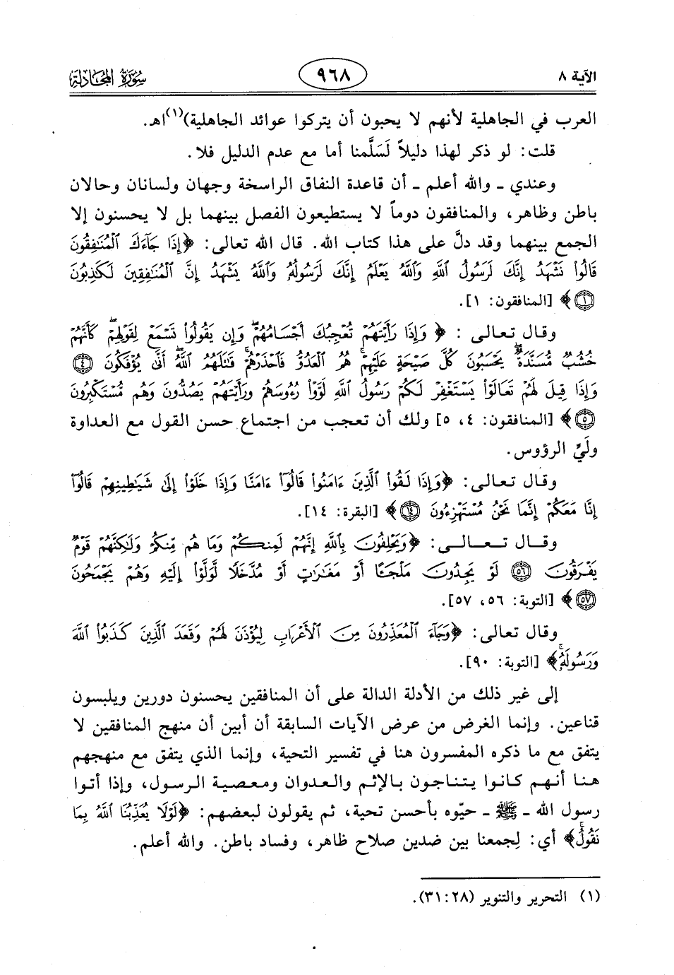 وعندي - واللَّه أعلم - أن قاعدة النفاق الراسخة وجهان ولسانان وحالان باطن وظاهر، والمنافقون دومًا لا يستطيعون الفصل بينهما بل لا يحسنون إلا الجمع بينهما وقد دلَّ على هذا كتاب الله. قال الله تعالى: (إِذَا جَاءَكَ الْمُنَافِقُونَ قَالُوا نَشْهَدُ إِنَّكَ لَرَسُولُ اللَّهِ وَاللَّهُ يَعْلَمُ إِنَّكَ لَرَسُولُهُ وَاللَّهُ يَشْهَدُ إِنَّ الْمُنَافِقِينَ لَكَاذِبُونَ).