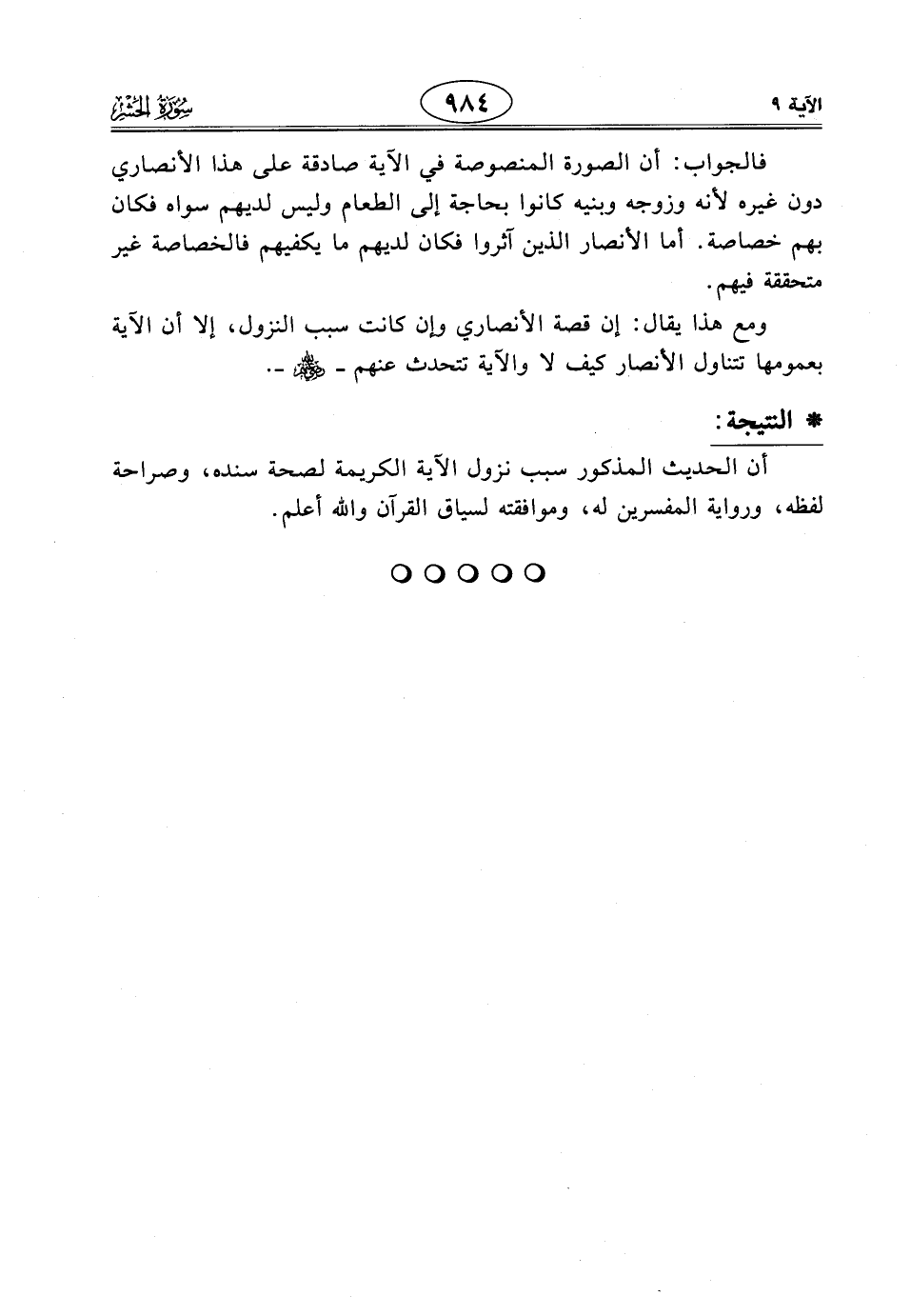 ومع هذا يقال: إن قصة الأنصاري وإن كانت سبب النزول، إلا أن الآية بعمومها تتناول الأنصار كيف لا والآية تتحدث عنهم - رَضِيَ اللَّهُ عَنْهُمْ -.
