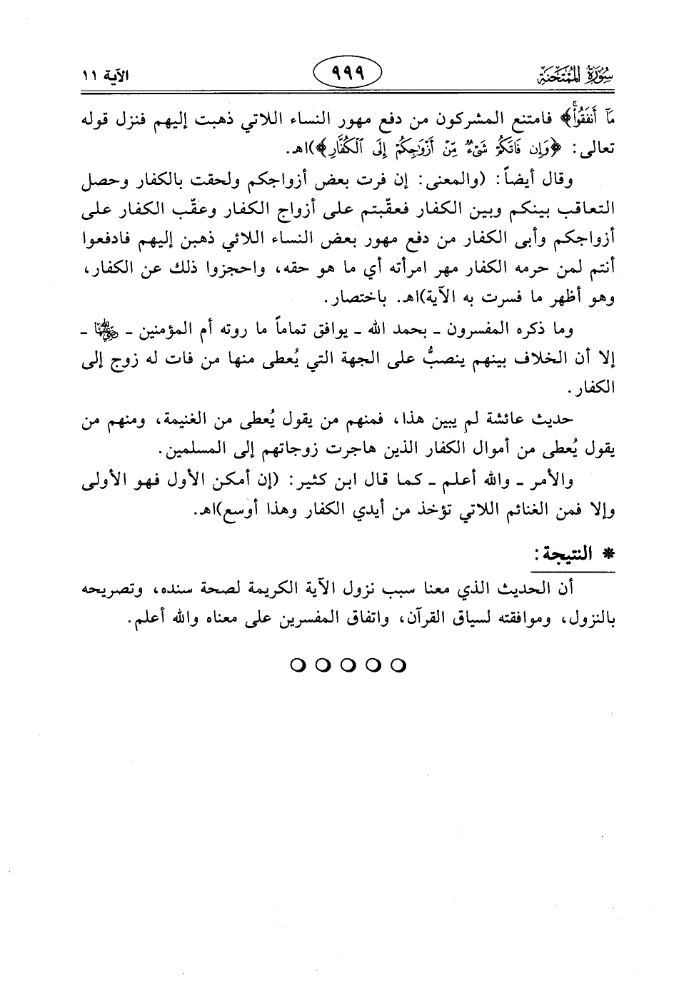 وقال أيضاً: (والمعنى: إن فرت بعض أزواجكم ولحقت بالكفار وحصل التعاقب بينكم وبين الكفار فعقّبتم على أزواج الكفار وعقّب الكفار على أزواجكم وأبى الكفار من دفع مهور بعض النساء اللائي ذهبن إليهم فادفعوا أنتم لمن حرمه الكفار مهر امرأته أي ما هو حقه، واحجزوا ذلك عن الكفار، وهو أظهر ما فسرت به الآية). اهـ باختصار.