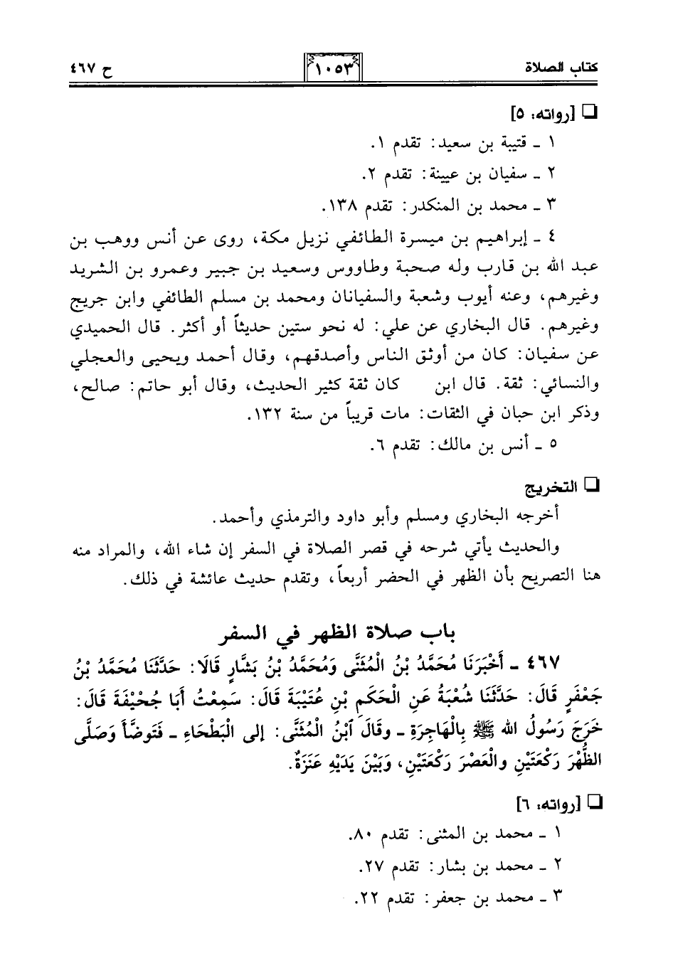 4 - إبراهيم بن ميسرة الطائفي نزيل مكة، روى عن أنس ووهب بن عبد الله بن قارب وله صحبة وطاووس وسعيد بن جبير وعمرو بن الشريد وغيرهم، وعنه أيوب وشعبة والسفيانان ومحمد بن مسلم الطائفي وابن جريج وغيرهم. قال البخاري عن علي: له نحو ستين حديثًا أو أكثر. قال الحميدي عن سفيان: كان من أوثق الناس وأصدقهم، وقال أحمد ويحيى والعجلي والنسائي: ثقة. قال ابن سعد: كان ثقة كثير الحديث، وقال أبو حاتم: صالح، وذكر ابن حبان في الثقات: مات قريبًا من سنة 132.