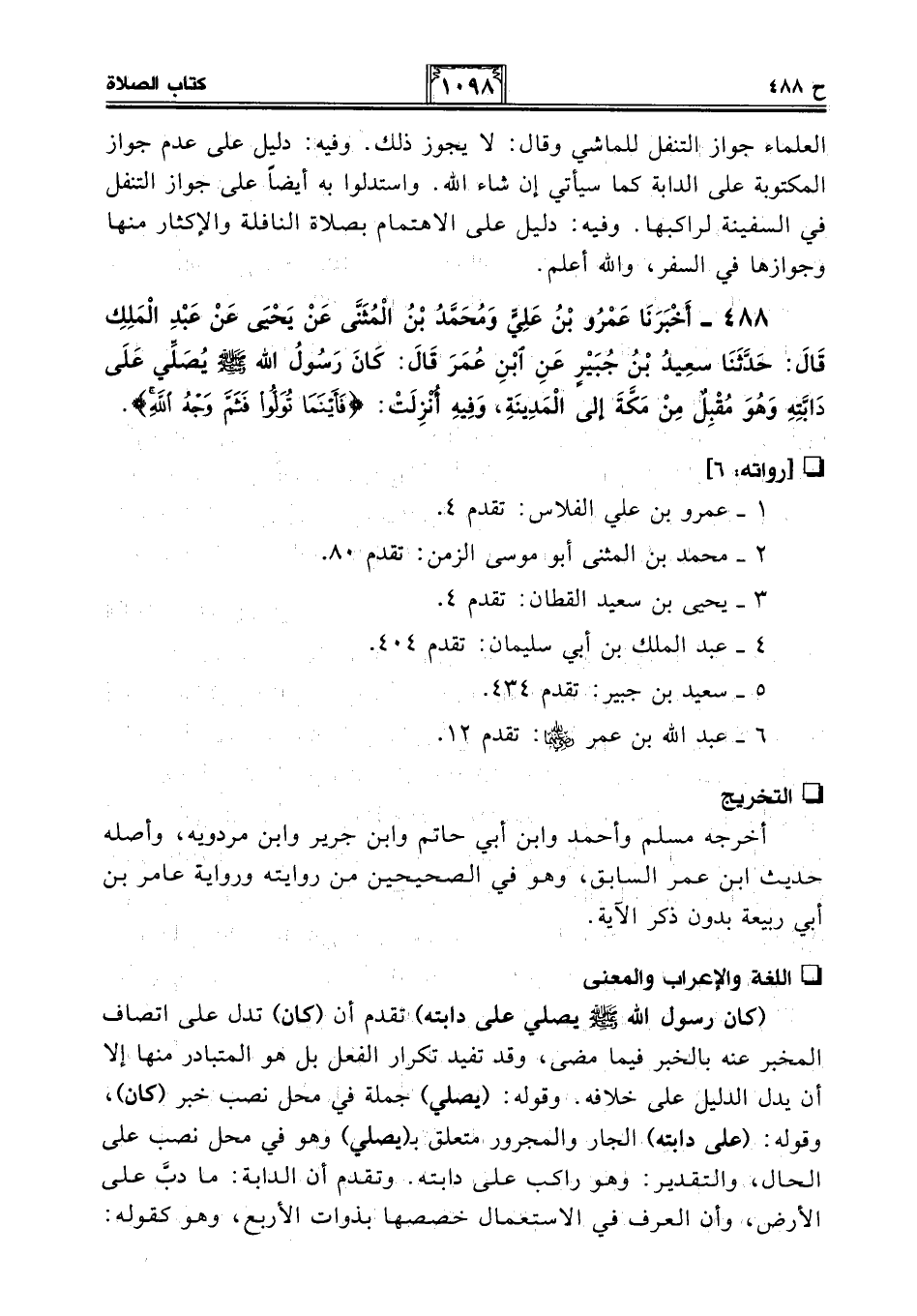 488 - أَخْبَرَنَا عَمْرُو بْنُ عَلِيٍّ وَمُحَمَّدُ بْنُ الْمُثَنَّى عَنْ يَحْيَى عَنْ عَبْدِ الْمَلِكِ قَالَ: حَدَّثَنَا سَعِيدُ بْنُ جُبَيْرٍ عَنِ ابْنِ عُمَرَ قَالَ: كَانَ رَسُولُ اللَّهِ - صلى الله عليه وسلم - يُصَلِّي عَلَى دَابَّتِهِ وَهُوَ مُقْبِلٌ مِنْ مَكَّةَ إِلَى الْمَدِينَةِ، وَفِيهِ أُنْزِلَتْ: {فَأَيْنَمَا تُوَلُّوا فَثَمَّ وَجْهُ اللَّهِ}.