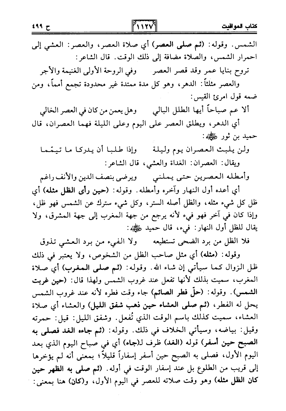 الشمس. وقوله: (ثم صلى العصر) أي صلاة العصر، والعصر: العشي إلى احمرار الشمس، والصلاة مضافة إلى ذلك الوقت. قال الشاعر: