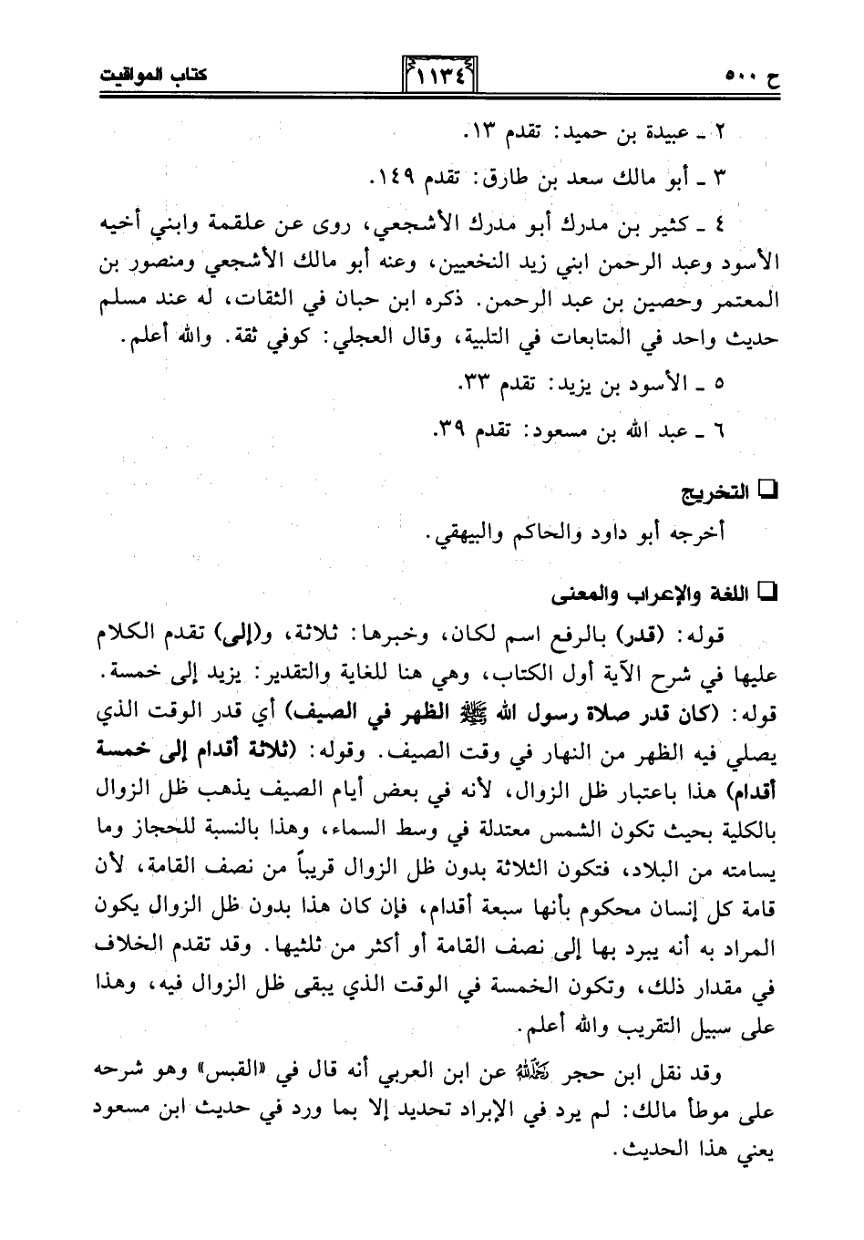 وقد نقل ابن حجر -رحمه الله- عن ابن العربي أنه قال "القبس" وهو شرحه على موطأ مالك: لم يرد في الإبراد تحديد إلا بما ورد في حديث ابن مسعود يعني هذا الحديث.