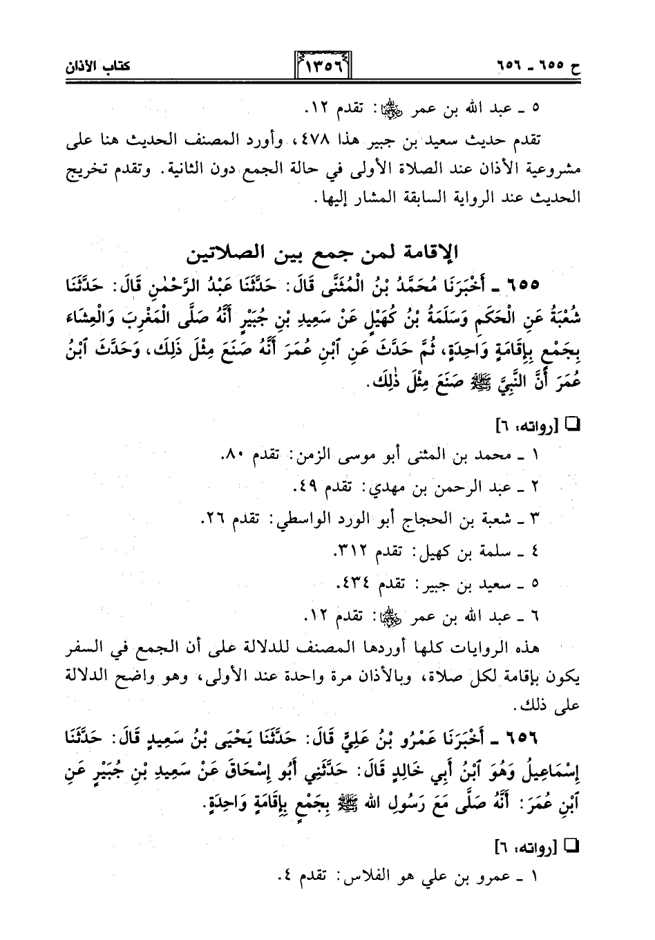 تقدم حديث سعيد بن جبير هذا 478، وأورد المصنف الحديث هنا على مشروعية الأذان عند الصلاة الأولى في حالة الجمع دون الثانية. وتقدم تخريج الحديث عند الرواية السابقة المشار إليها.