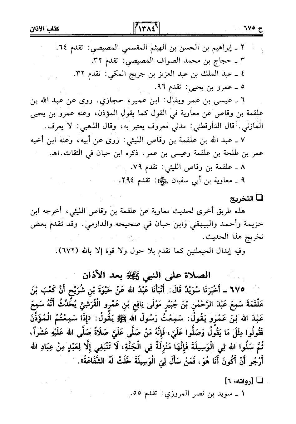 وفيه إبدال الحيعلتين كما تقدم بلا حول ولا قوة إلا بالله (672).