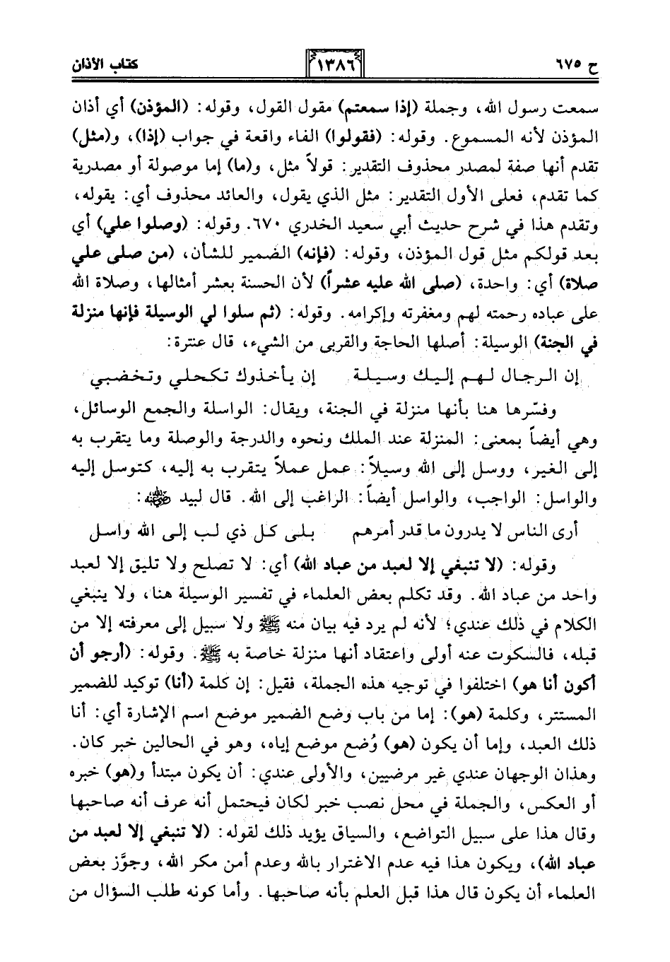سمعت رسول الله، وجملة (إذا سمعتم) مقول القول، وقوله: (المؤذن) أي أذان المؤذن لأنه المسموع. وقوله: (فقولوا) الفاء واقعة في جواب (إذا)، و (مثل) تقدم أنها صفة لمصدر محذوف التقدير: قولًا مثل، و (ما) إما موصولة أو مصدرية كما تقدم، فعلى الأول التقدير: مثل الذي يقول، والعائد محذوف أي: يقوله، وتقدم هذا في شرح حديث أبي سعيد الخدري 670. وقوله: (وصلوا علي) أي بعد قولكم مثل قول المؤذن، وقوله: (فإنه) الضمير للشأن، (من صلى علي صلاة) أي: واحدة، (صلى الله عليه عشرًا) لأن الحسنة بعشر أمثالها، وصلاة الله على عباده رحمته لهم ومغفرته وإكرامه. وقوله: (ثم سلوا لي الوسيلة فإنها منزلة في الجنة) الوسيلة: أصلها الحاجة والقربى من الشيء، قال عنترة: