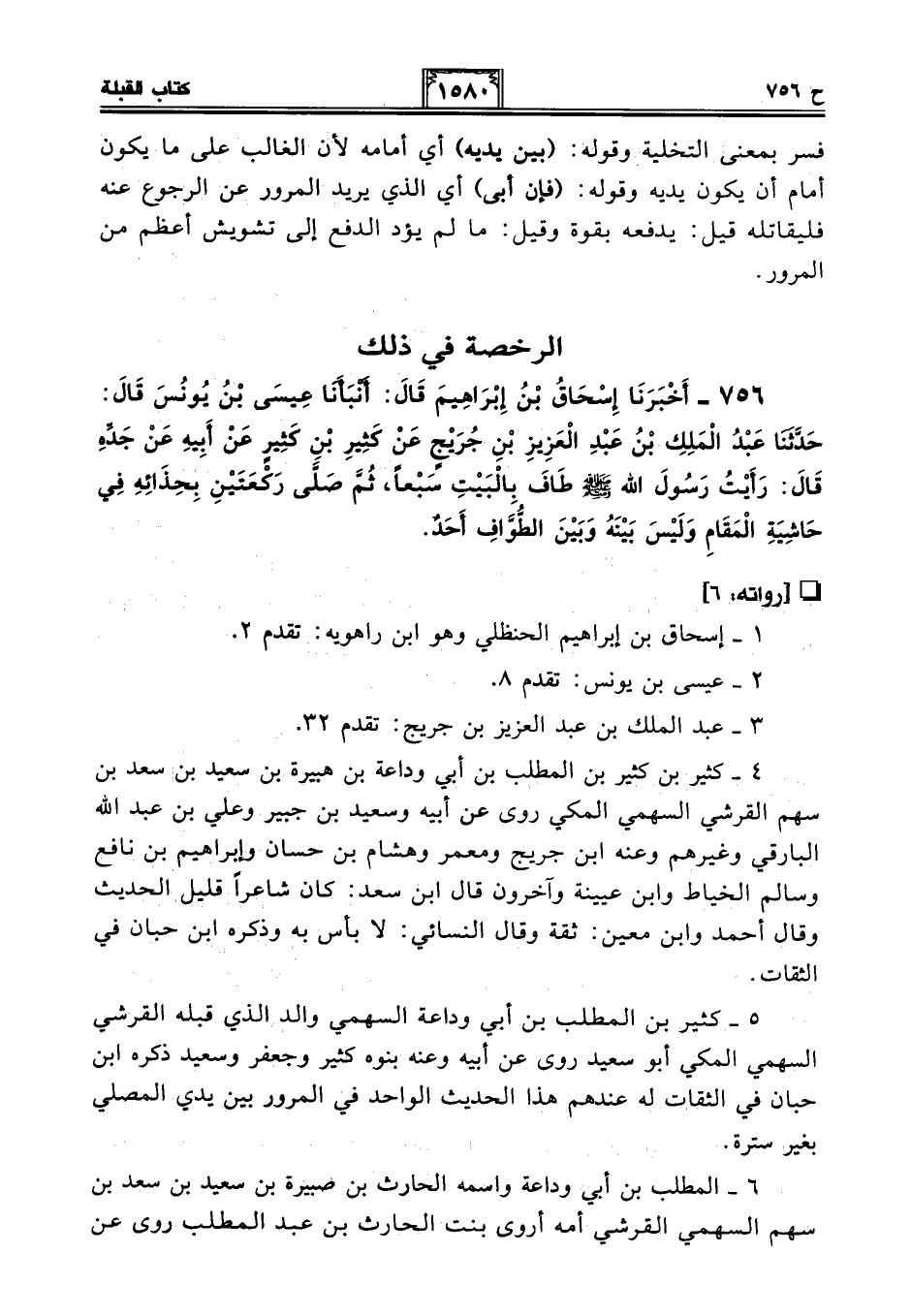 5 - كثير بن المطلب بن أبي وداعة السهمي والد الذي قبله القرشي السهمي المكي أبو سعيد روى عن أبيه وعنه بنوه كثير وجعفر وسعيد ذكره ابن حبان في الثقات له عندهم هذا الحديث الواحد في المرور بين يدي المصلي بغير سترة.