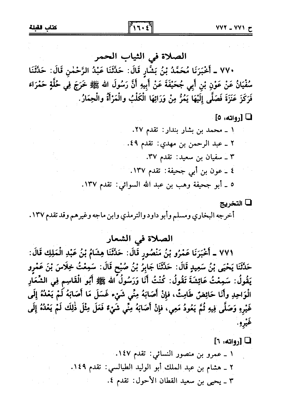 الصَّلَاةِ فِي الثِّيَابِ الْحُمُرِ