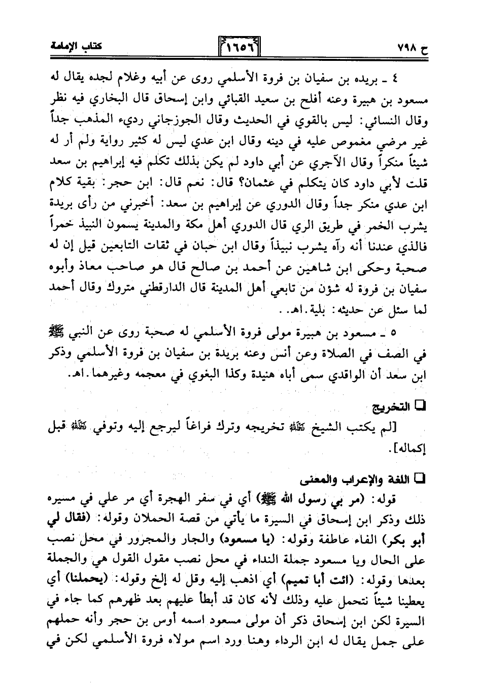 [لم يكتب الشيخ -رحمه الله- تخريجه وترك فراغا ليرجع إليه وتوفي -رحمه الله- قبل إكماله].