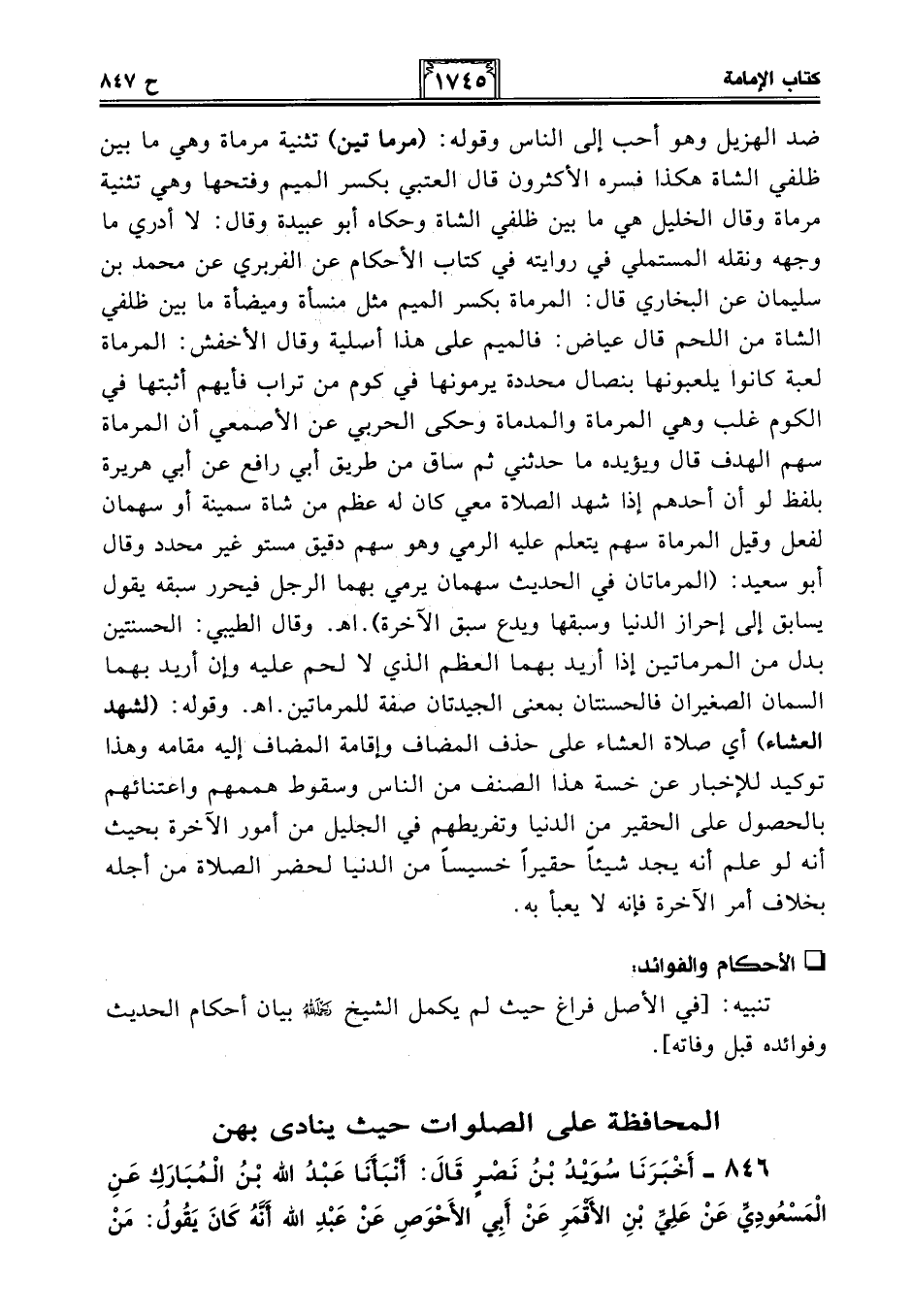 تنبيه: [في الأصل فراغ حيث لم يكمل الشيخ -رحمه الله- بيان أحكام الحديث وفوائده قبل وفاته].