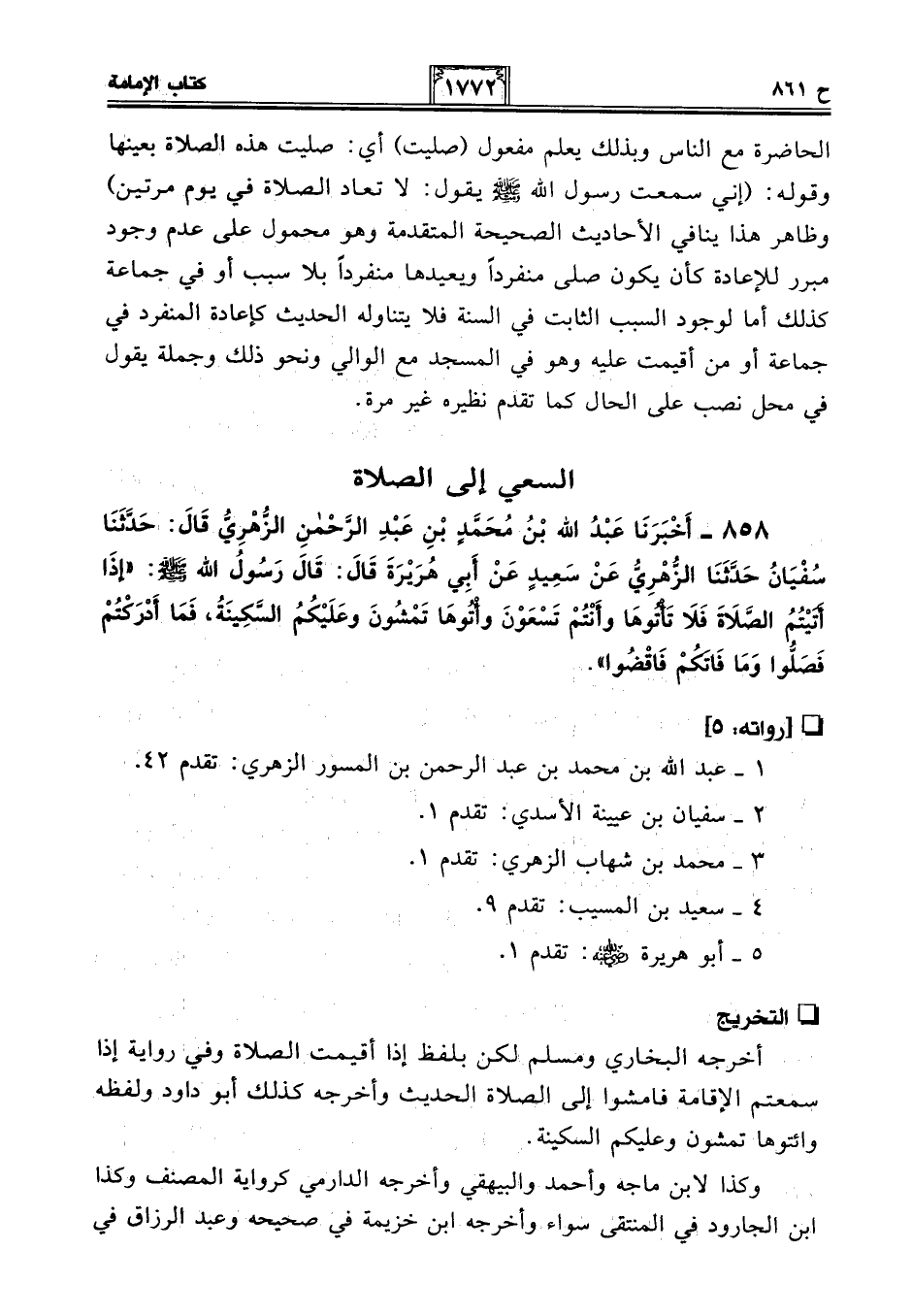 أخرجه البخاري ومسلم لكن بلفظ إذا أقيمت الصلاة وفي رواية إذا سمعتم الإقامة فامشوا إلى الصلاة الحديث وأخرجه كذلك أبو داود ولفظه وائتوها تمشون وعليكم السكينة.
