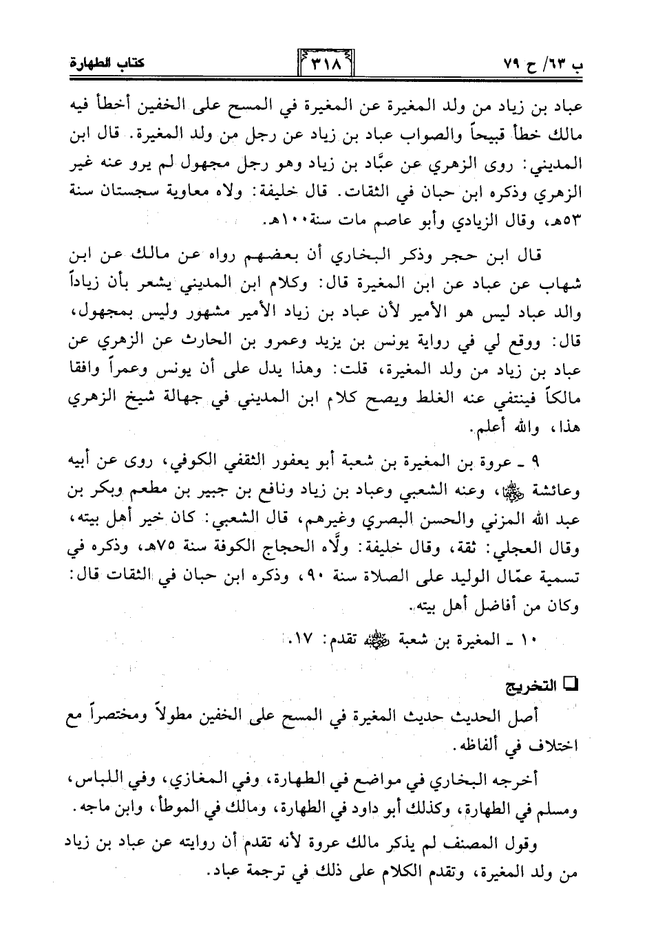 قال ابن حجر وذكر البخاري أن بعضهم رواه عن مالك عن ابن شهاب عن عباد عن ابن المغيرة قال: وكلام ابن المديني يشعر بأن زيادًا والد عباد ليس هو الأمير لأن عباد بن زياد الأمير مشهور وليس بمجهول، قال: ووقع لي في رواية يونس بن يزيد وعمرو بن الحارث عن الزهري عن عباد بن زياد من ولد المغيرة، قلت: وهذا يدل على أن يونس وعمرًا وافقا مالكًا فينتفي عنه الغلط ويصح كلام ابن المديني في جهالة شيخ الزهري هذا، والله أعلم.