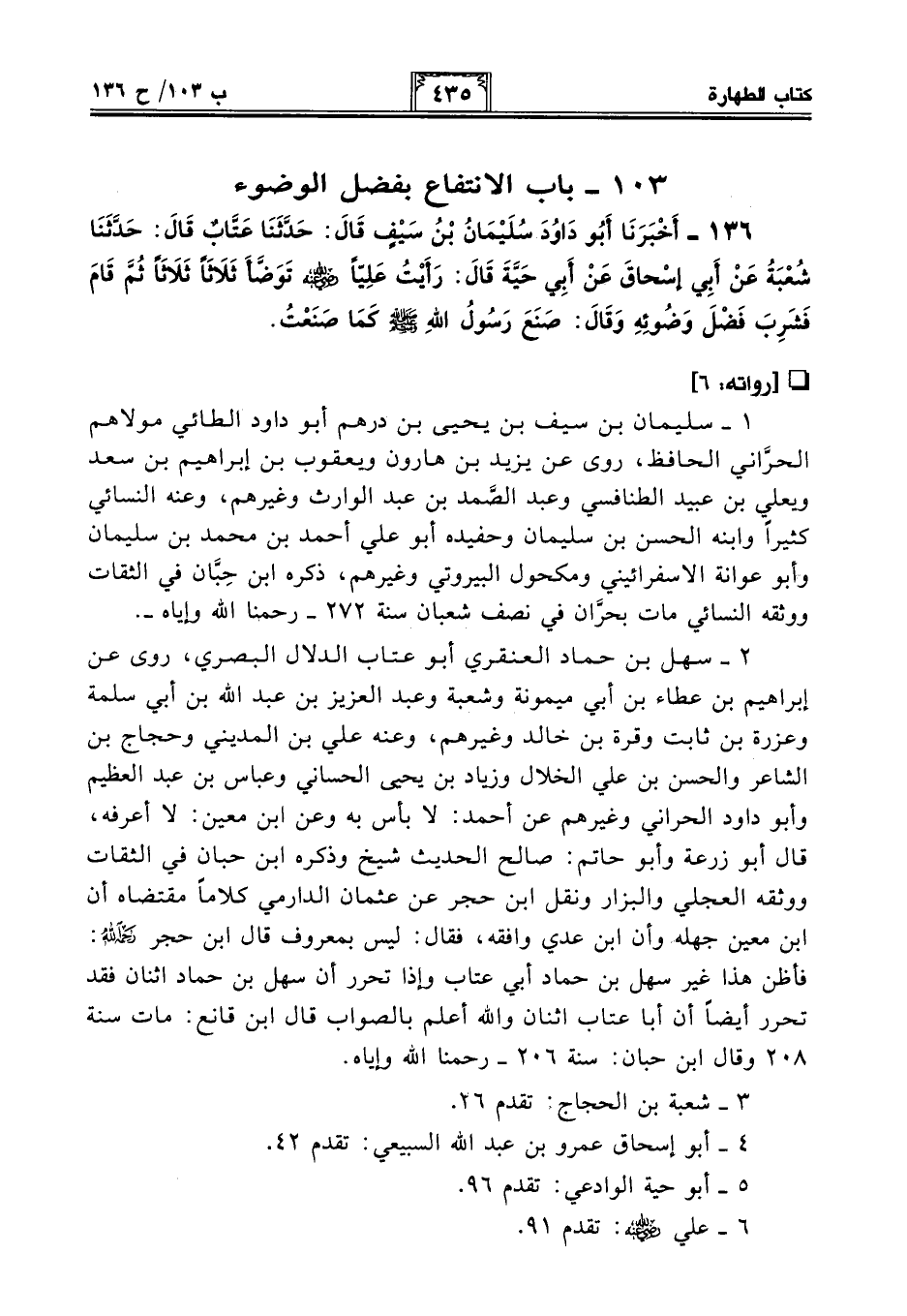 103 - باب الإنْتِفَاعِ بِفَضْلِ الْوُضُوءِ