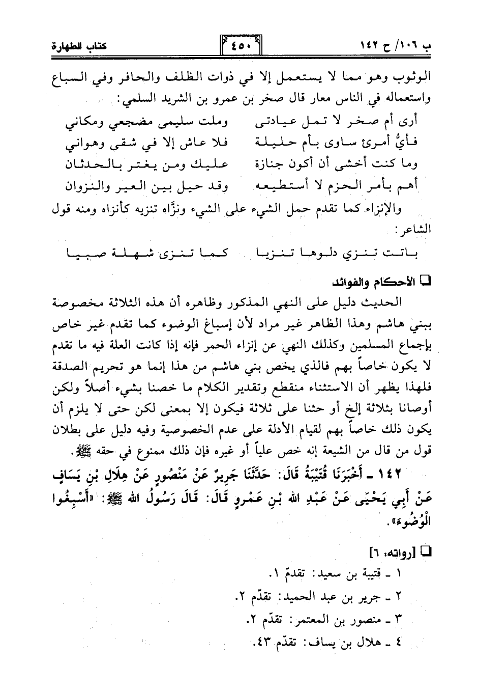 142 - أَخْبَرَنَا قُتَيْبَةُ قَالَ: حَدَّثَنَا جَرِيرٌ عَنْ مَنْصُورٍ عَنْ هِلَالِ بْنِ يِسَافٍ عَنْ أَبِي يَحْيَى عَنْ عَبْدِ اللَّهِ بْنِ عَمْرٍو قَالَ: قَالَ رَسُولُ اللَّهِ - صلى الله عليه وسلم -: "أَسْبِغُوا الْوُضُوءَ".
