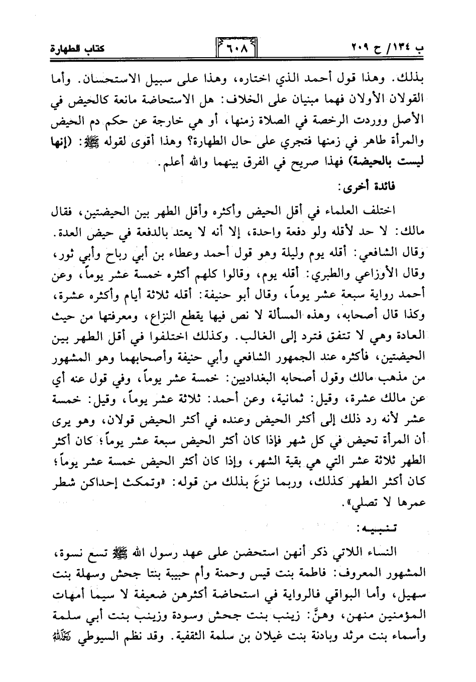 النساء اللاتي ذكر أنهن استحضن على عهد رسول الله - صلى الله عليه وسلم - تسع نسوة، المشهور المعروف: فاطمة بنت قيس وحمنة وأم حبيبة بنتا جحش وسهلة بنت سهيل، وأما البواقي فالرواية في استحاضة أكثرهن ضعيفة لاسيما أمهات المؤمنين منهن، وهن: زينب بنت جحش وسودة وزينب بنت أبي سلمة وأسماء بنت مرثد وبادنة بنت غيلان بن سلمة الثقفية. وقد نظم السيوطي -رحمه الله-