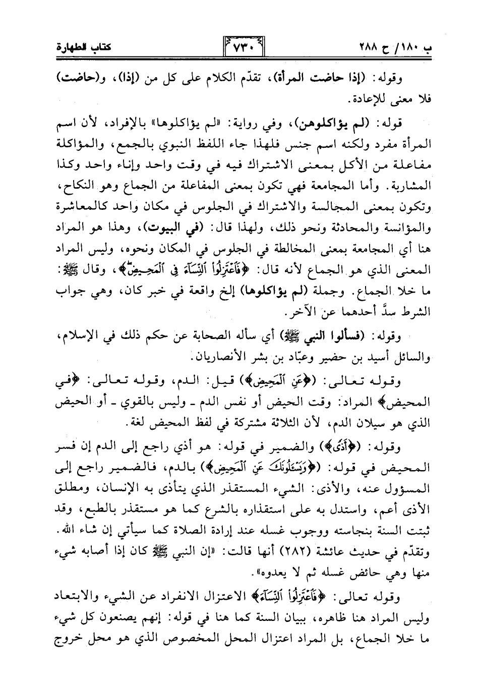 وقوله تعالى: {فَاعْتَزِلُوا النِّسَاءَ} الإعتزال الإنفراد عن الشيء والإبتعاد وليس المراد هنا ظاهره، ببيان السنة كما هنا في قوله: إنهم يصنعون كل شيء ما خلا الجماع، بل المراد اعتزال المحل المخصوص الذي هو محل خروج