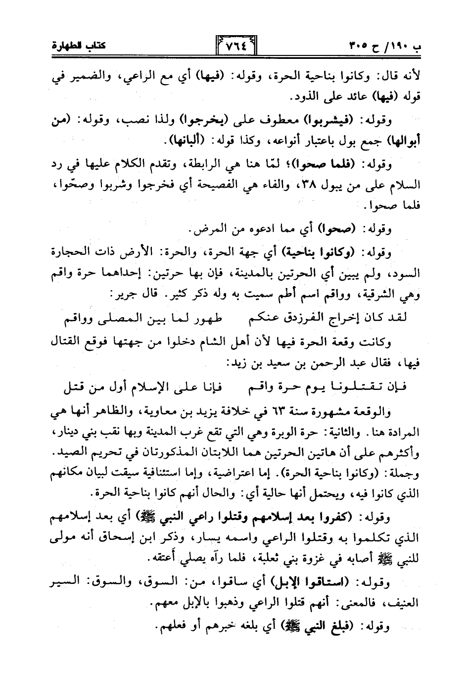 وقوله: (وكانوا بناحية) أي جهة الحرة، والحرة: الأرض ذات الحجارة السود، ولم يبين أي الحرتين بالمدينة، فإن بها حرتين: إحداهما حرة واقم وهي الشرقية، وواقم اسم أطم سميت به وله ذكر كثير. قال جرير: