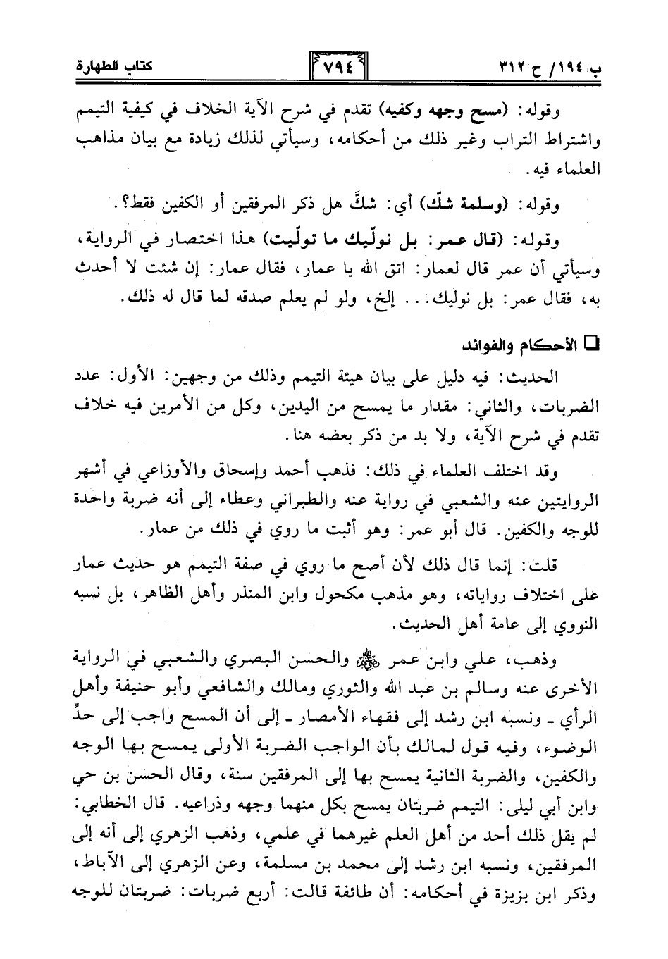 قلت: إنما قال ذلك لأن أصح ما روي في صفة التيمم هو حديث عمار على اختلاف رواياته، وهو مذهب مكحول وابن المنذر وأهل الظاهر، بل نسبه النووي إلى عامة أهل الحديث.