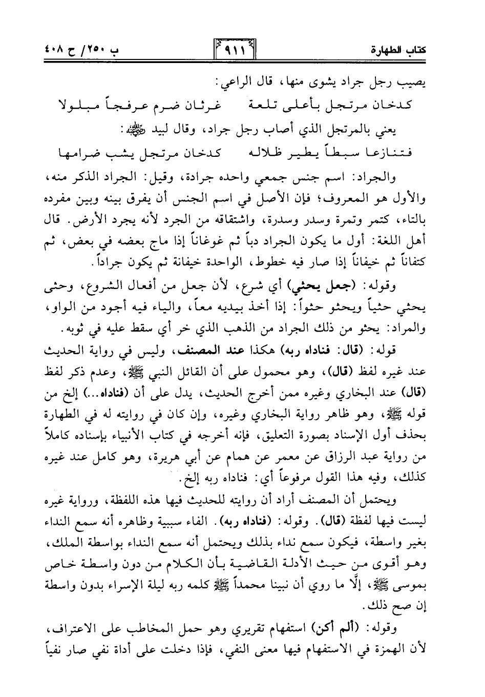 يعني بالمرتجل الذي أصاب رجل جراد، وقال لبيد - رضي الله عنه -: