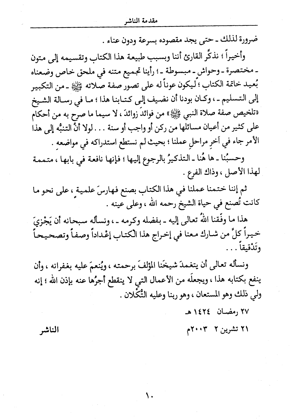 بُعيد خاتمة الكتاب؛ ليكون عوناً له على تصور صفة صلاته صَلَّى اللَّهُ عَلَيْهِ وَسَلَّمَ - من التكبير