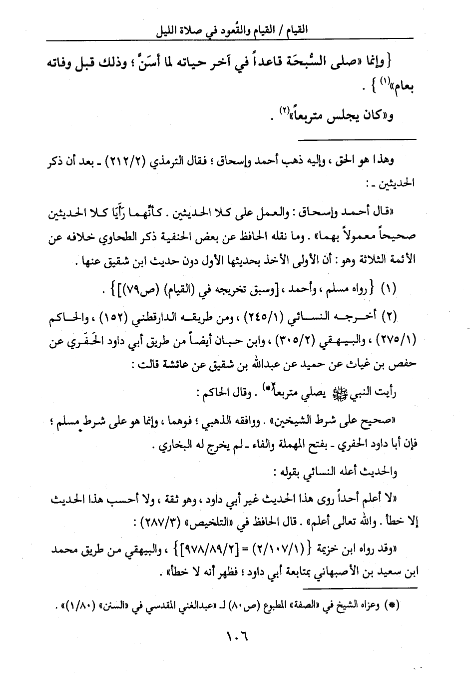 (*) وعزاه الشيخ في " الصفة " المطبوع (ص 80) لـ " عبد الغني المقدسي في " السنن " (80/1) ".