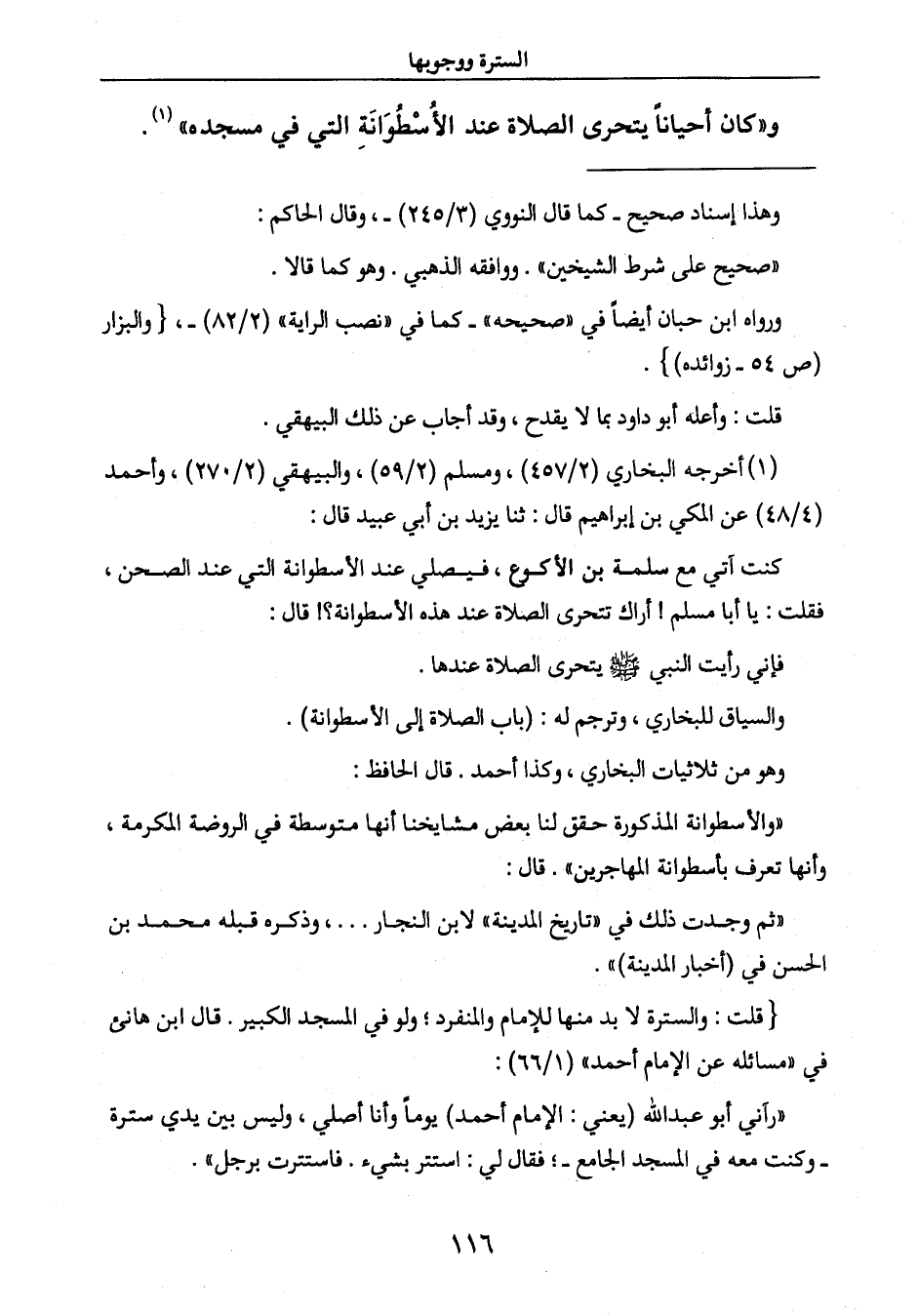 " رآني أبو عبد الله (يعني: الإمام أحمد) يوماً وأنا أصلي، وليس بين يدي سترة