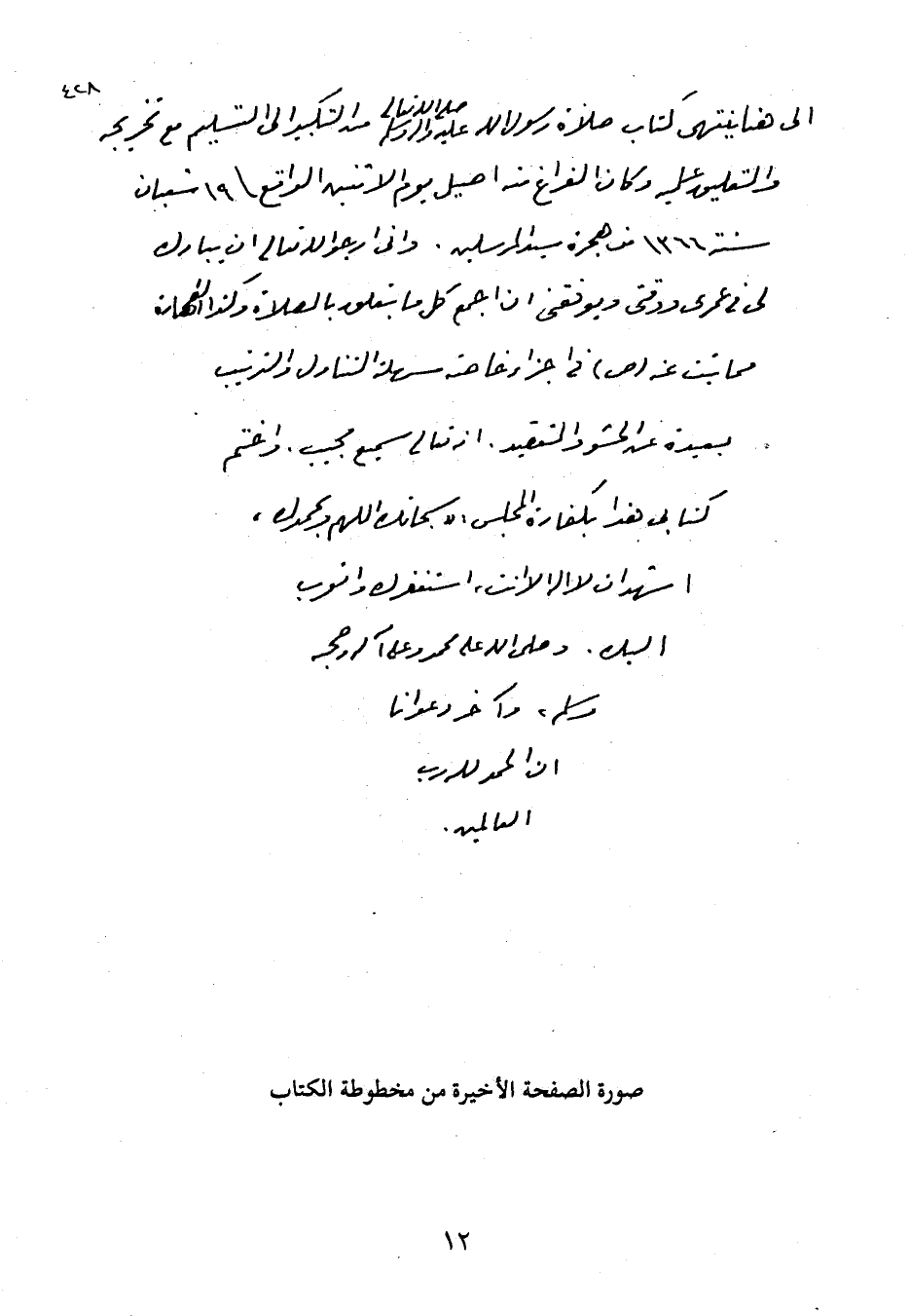 صورة الصفحة الأخيرة من مخطوطة الكتاب