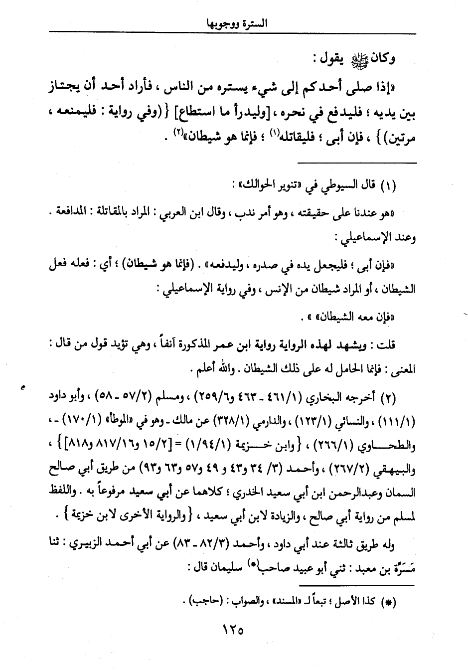 " إذا صلى أحدكم إلى شيء يستره من الناس، فأراد أحد أن يجتاز