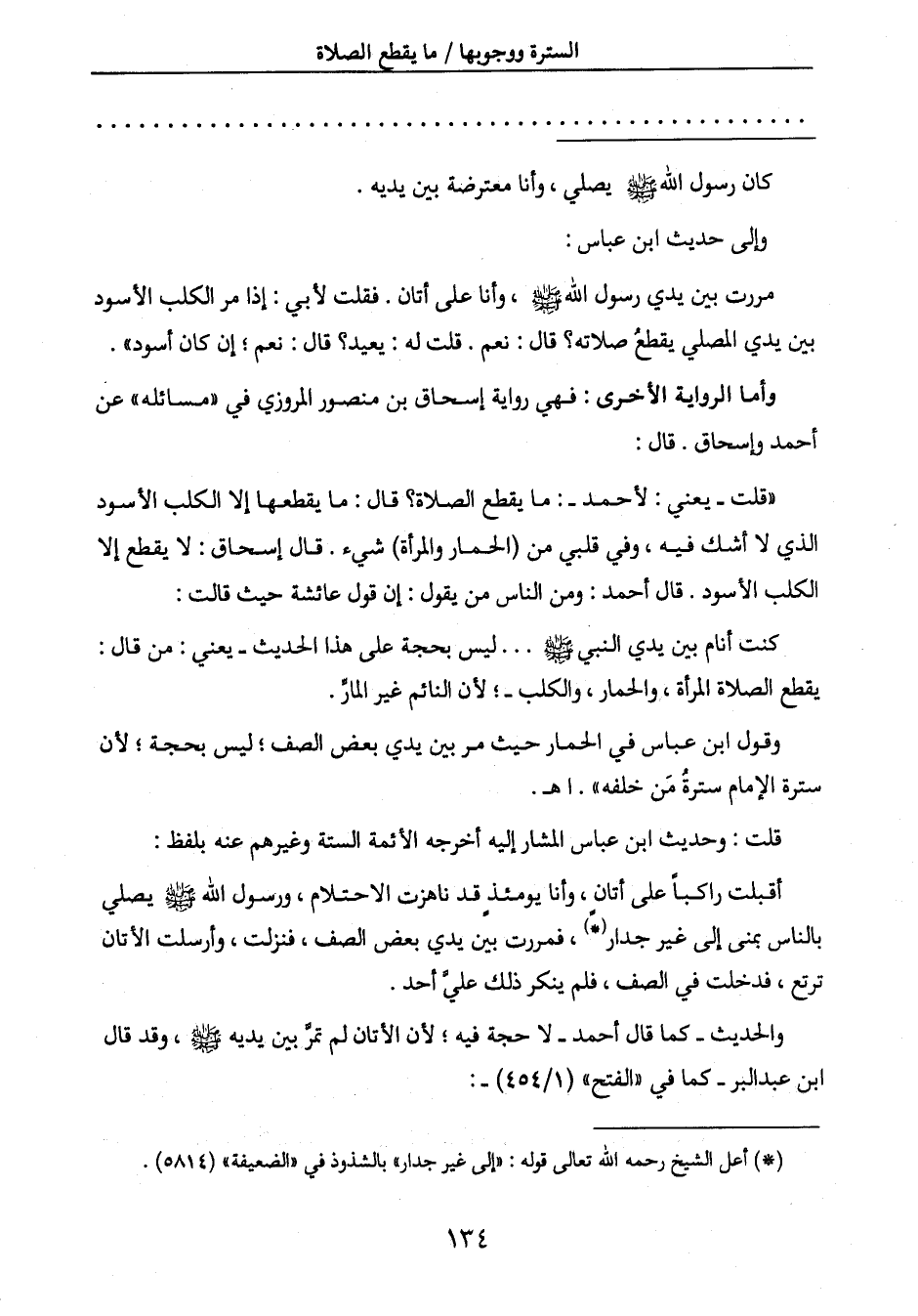والحديث - كما قال أحمد - لا حجة فيه؛ لأن الأتان لم تمرَّ بين يديه صَلَّى اللَّهُ عَلَيْهِ وَسَلَّمَ، وقد قال