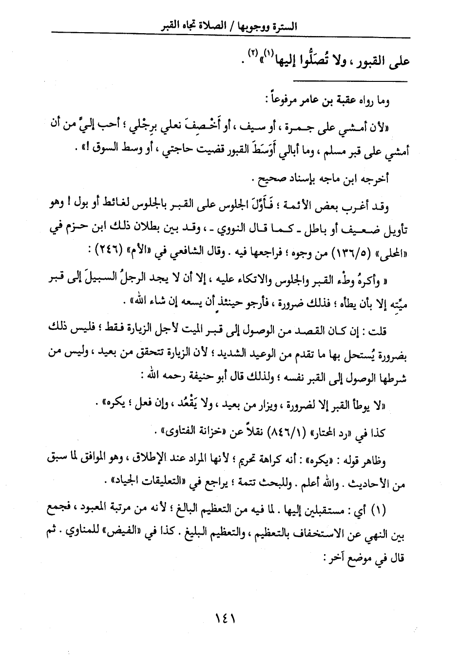 أمشي على قبر مسلم، وما أبالي أَوَسَطَ القبور قضيت حاجتي، أو وسط السوق! ".