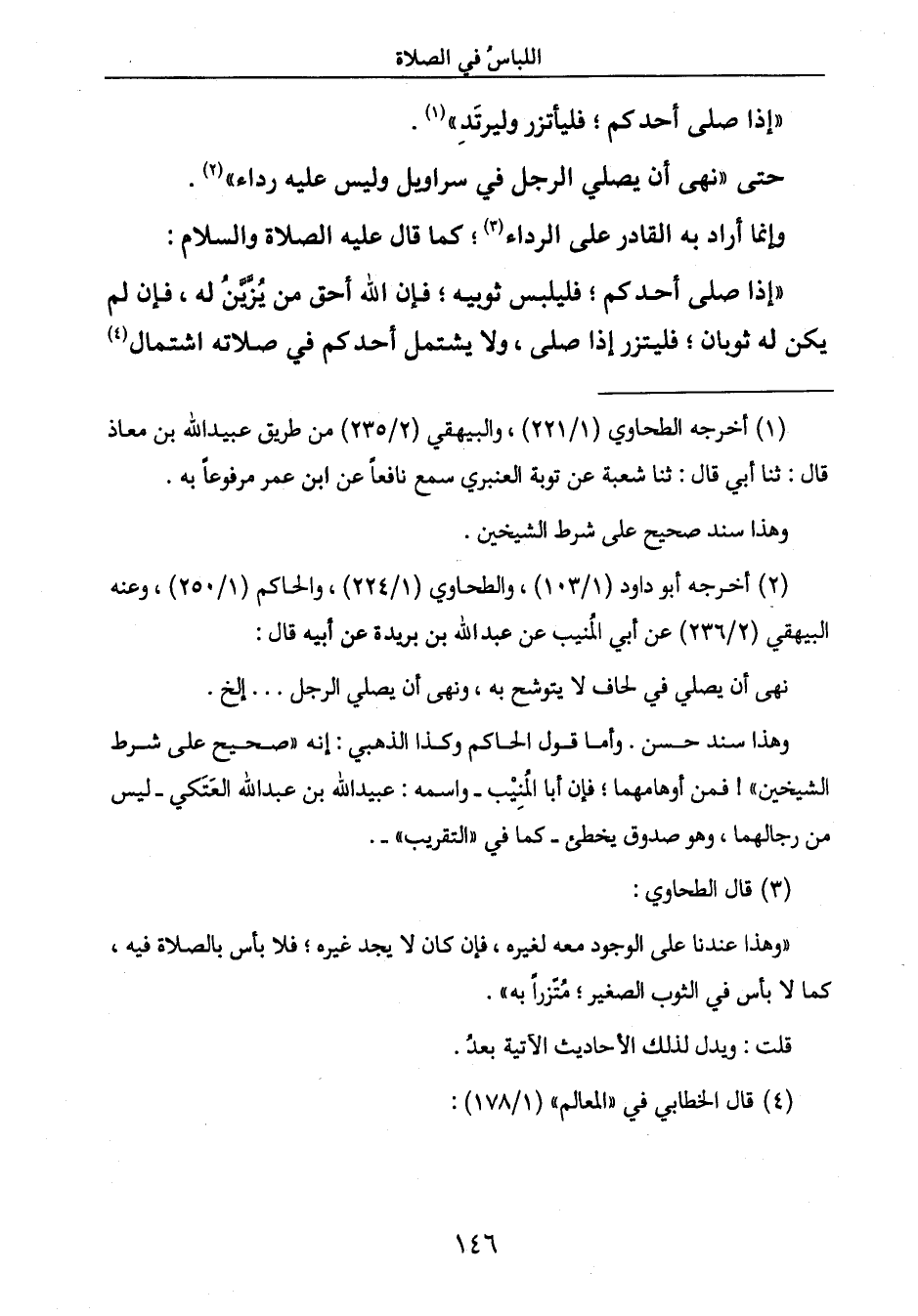 حتى " نهى أن يصلي الرجل في سراويل وليس عليه رداء " (2) .