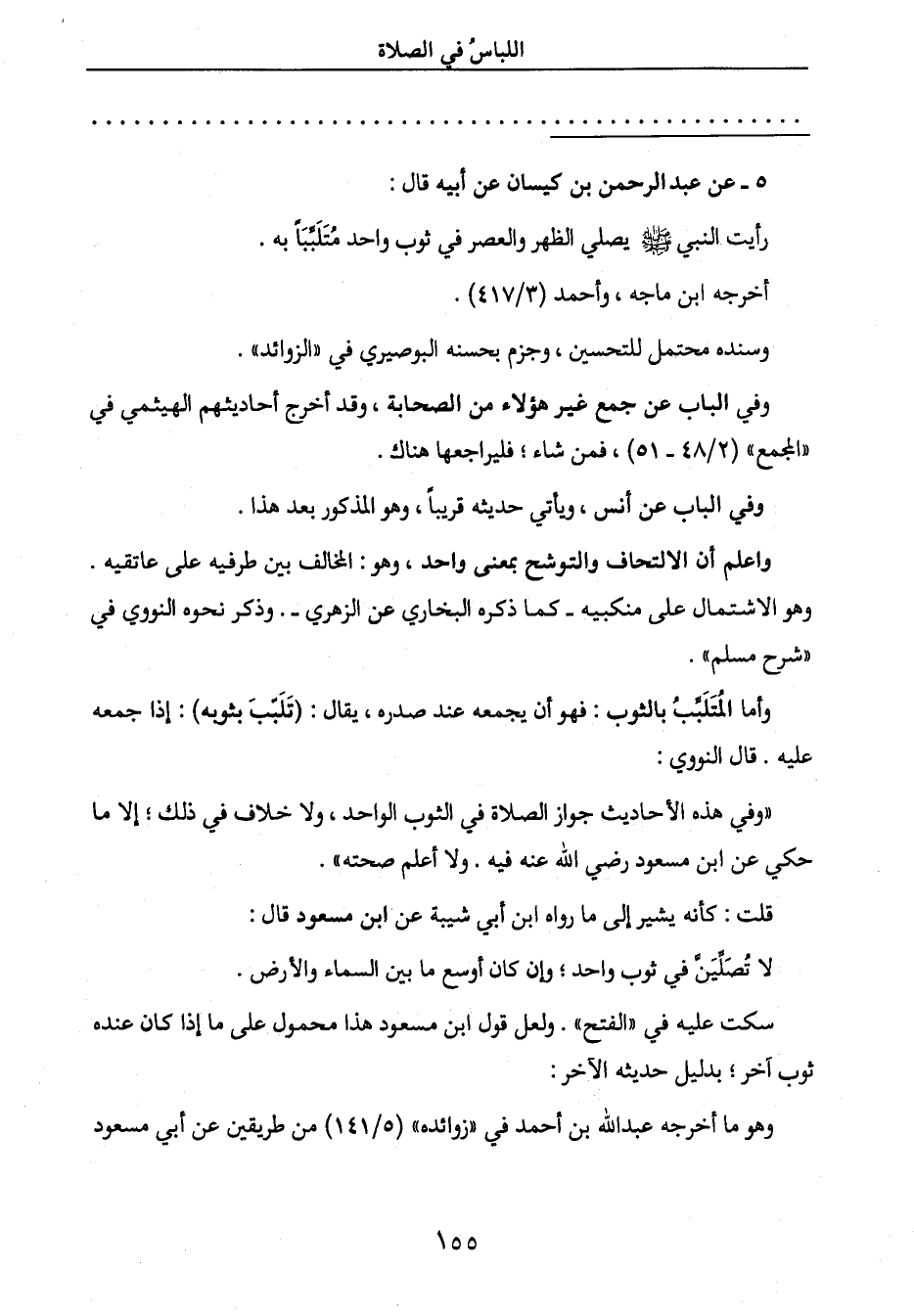 رأيت النبي صَلَّى اللَّهُ عَلَيْهِ وَسَلَّمَ يصلي الظهر والعصر في ثوب واحد مُتَلَيِّبَاً به.