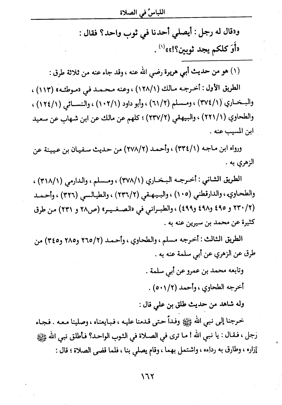 رجل، فقال: يا نبي الله! ما ترى في الصلاة في الثوب الواحد؟ فأطلق نبي الله صَلَّى اللَّهُ عَلَيْهِ وَسَلَّمَ