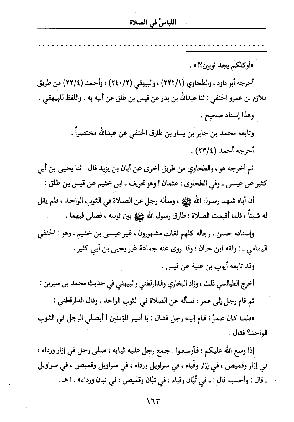 إذا وسع الله عليكم؛ فأوسعوا. جمع رجل عليه ثيابه، صلى رجل في إزار ورداء،