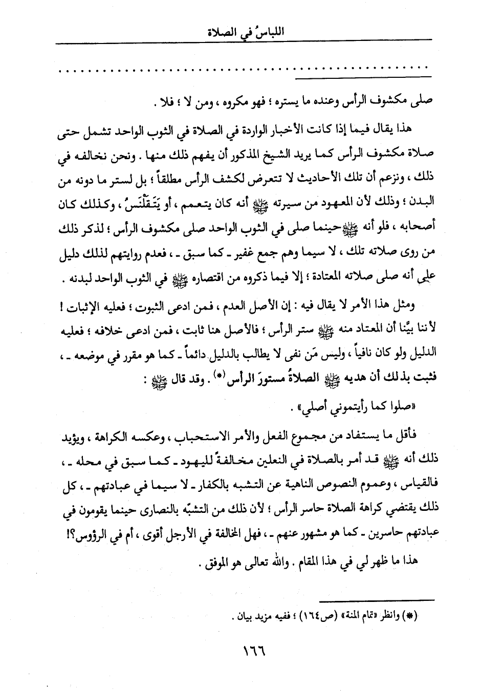 صلاة مكشوف الرأس كما يريد الشيخ المذكور أن يفهم ذلك منها. ونحن نخالفه في