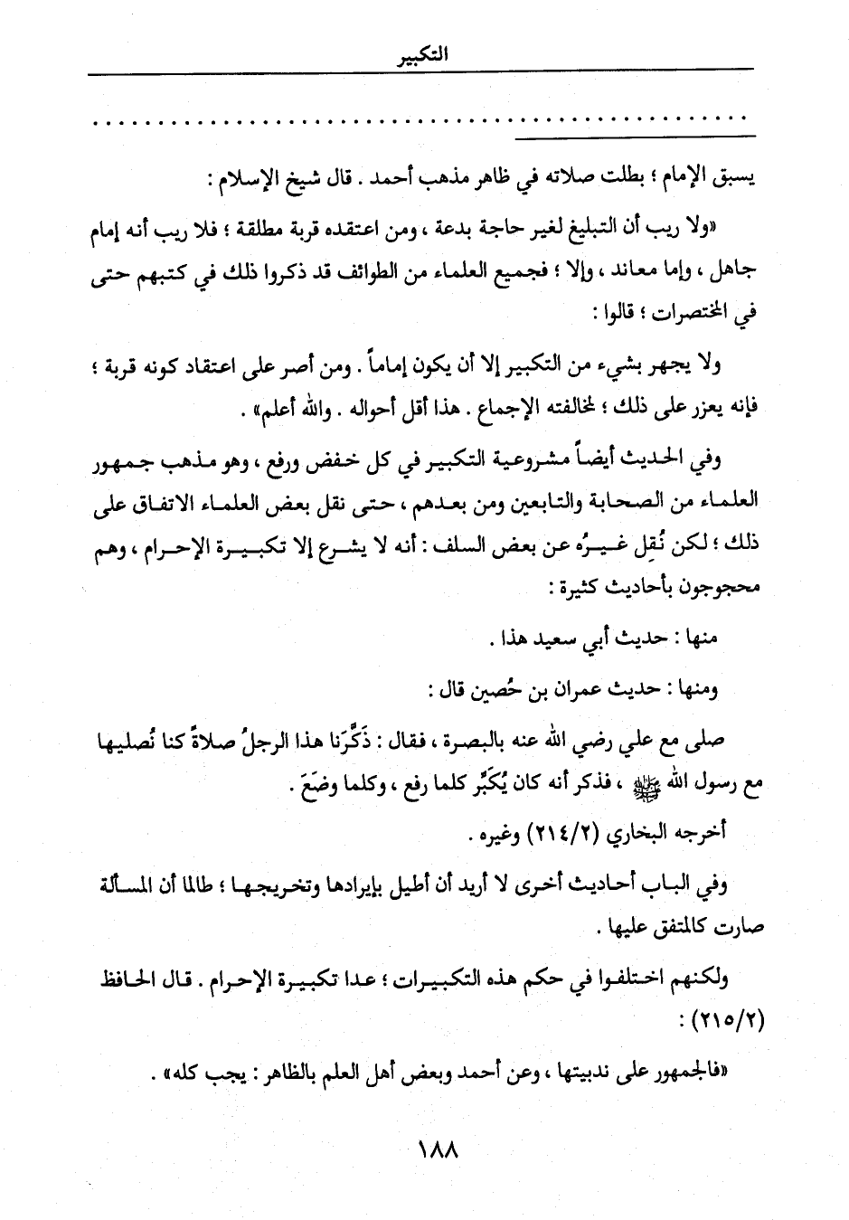 ولا يجهر بشيء من التكبير إلا أن يكون إماماً. ومن أصر على اعتقاد كونه قربة؛