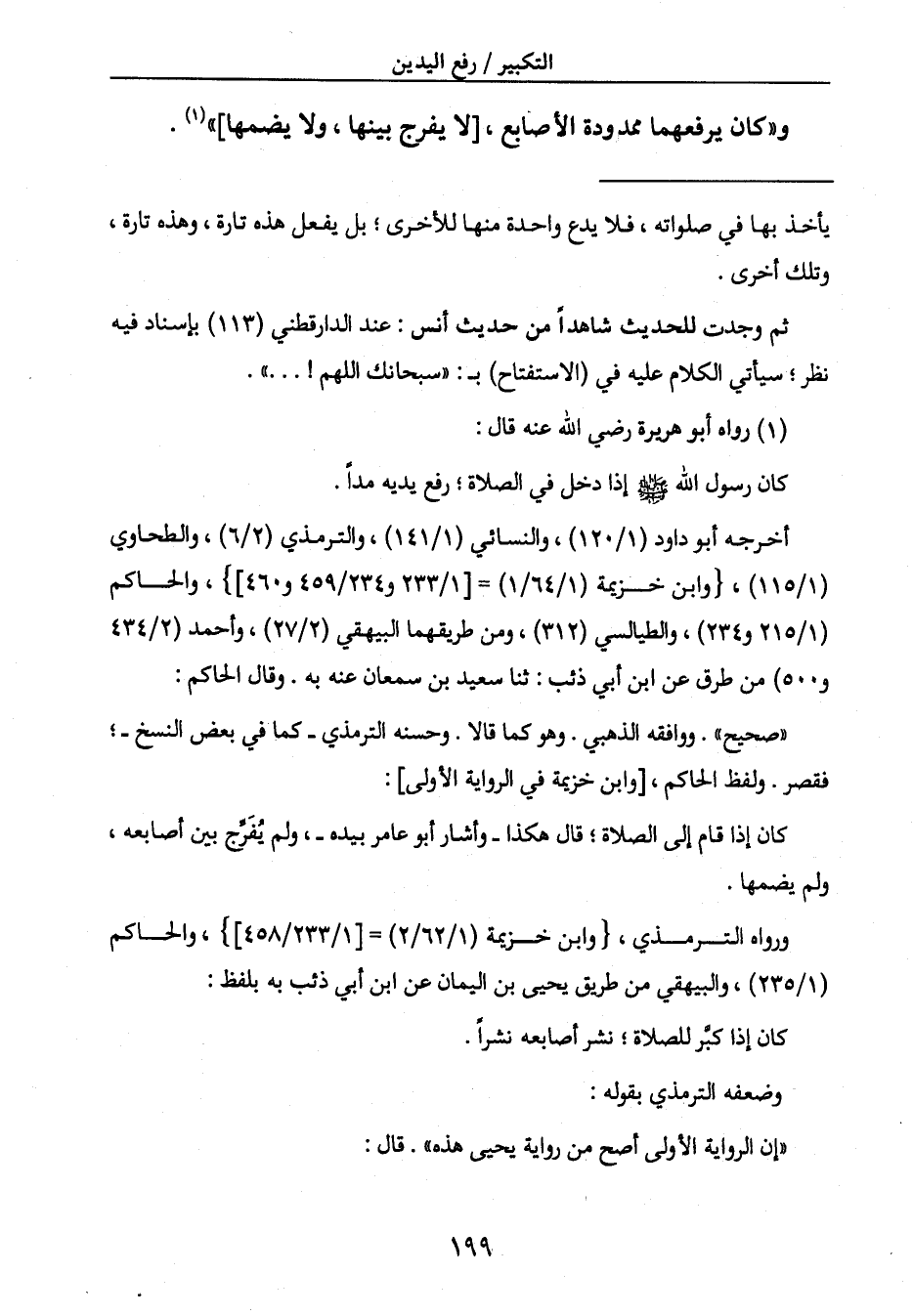 و " كان يرفعهما ممدودة الأصابع، [لا يفرج بينها، ولا يضمها] " (1) .