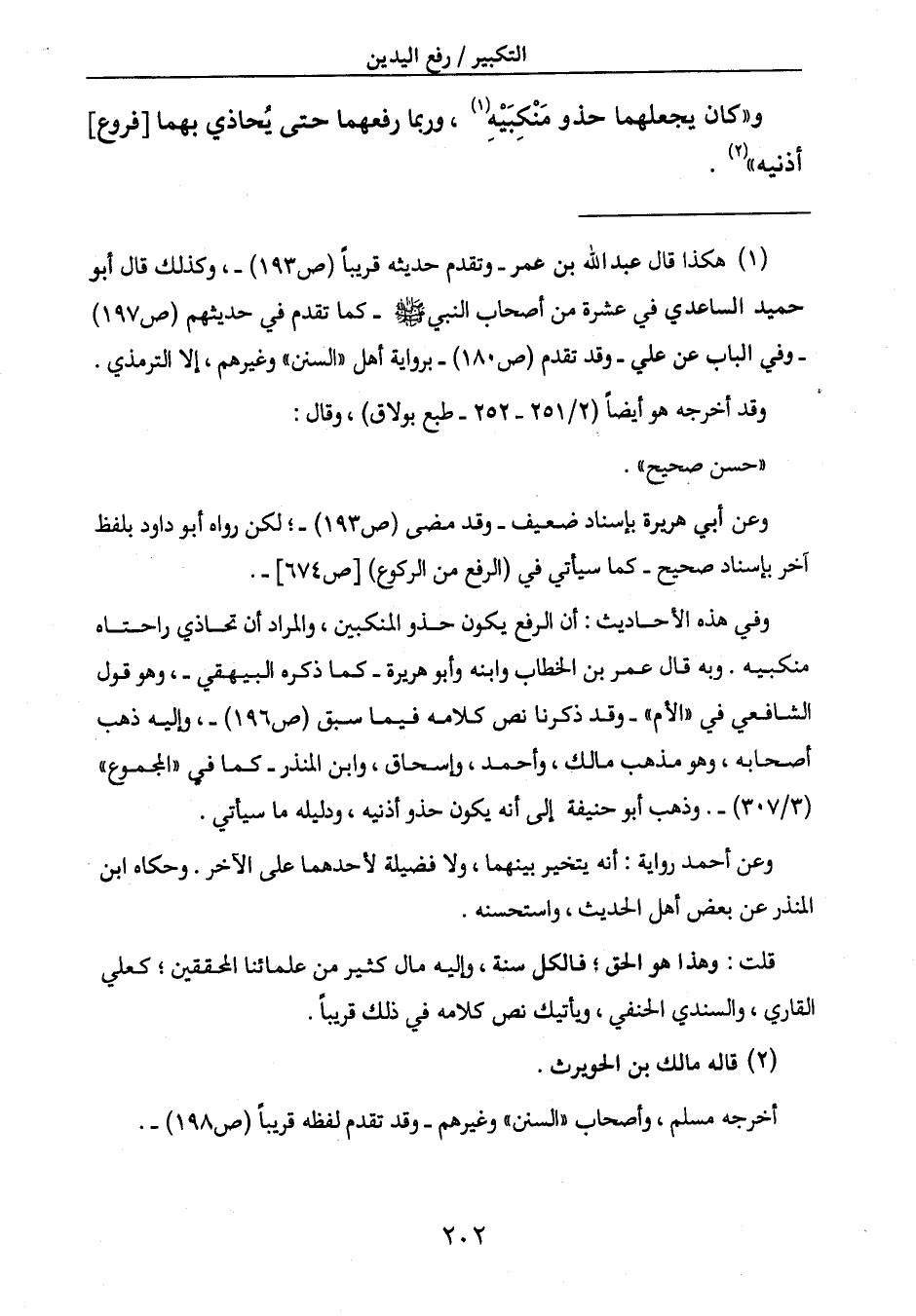 (3/307) -. وذهب أبو حنيفة إلى أنه يكون حذو أذنيه، ودليله ما سيأتي.