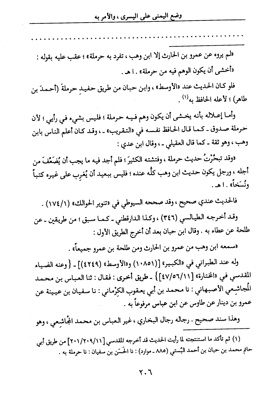 فلو كان الحديث عند " الأوسط "، وابن حبان من طريق حفيدِ حرملةَ (أحمدَ بن