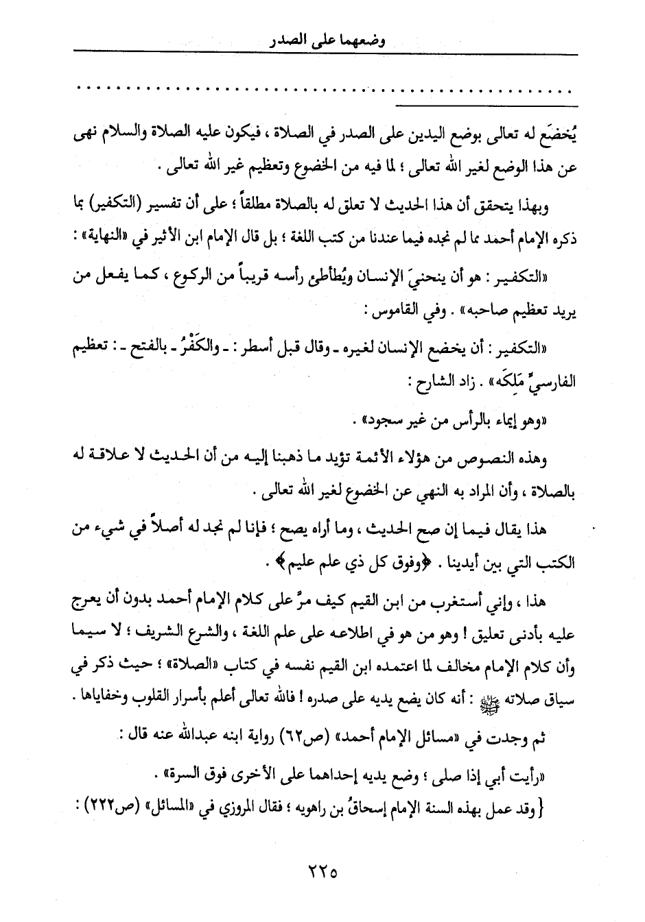 وأن كلام الإمام مخالف لما اعتمده ابن القيم نفسه في كتاب " الصلاة "؛ حيث ذكر في
