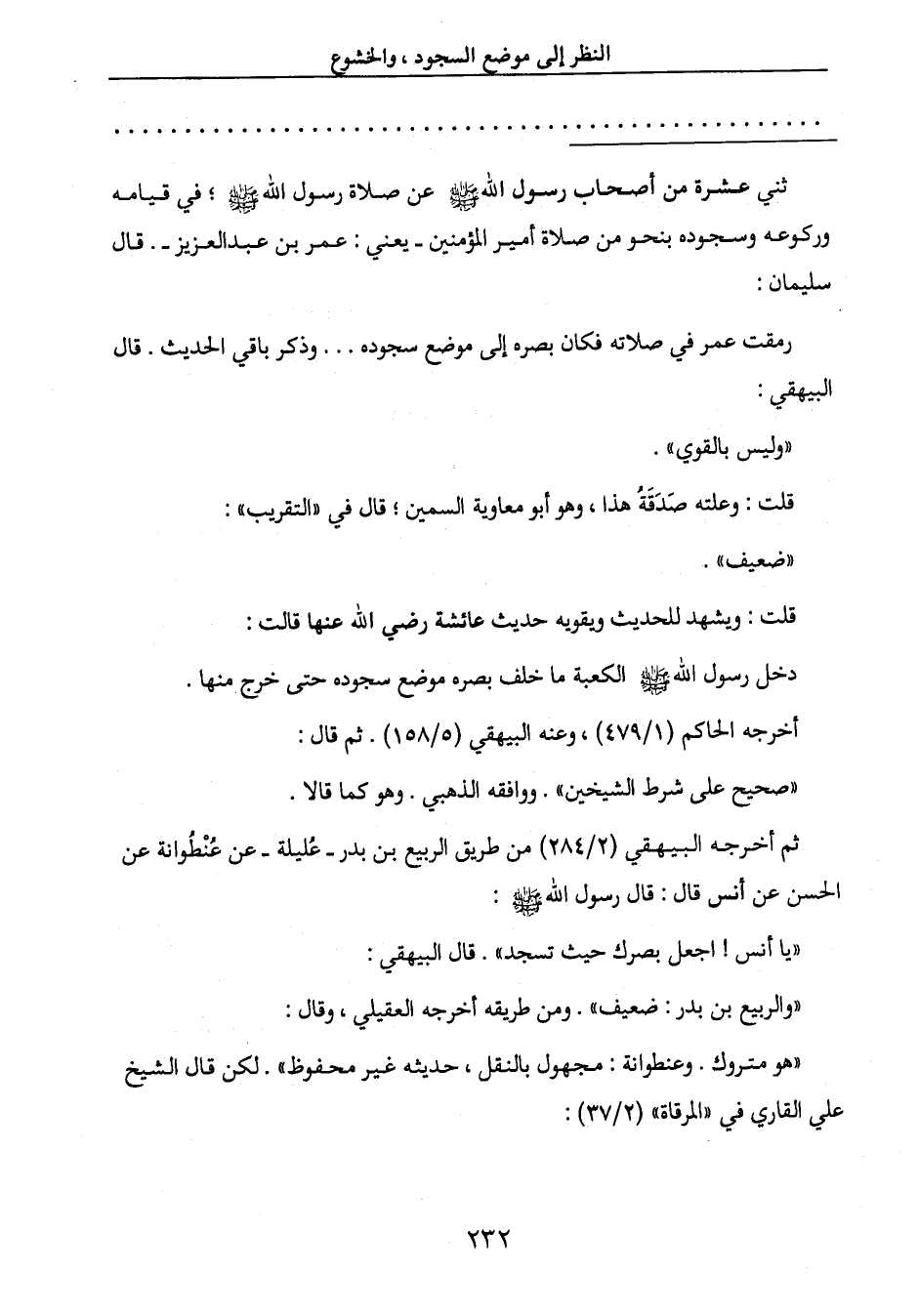 " يا أنس! اجعل بصرك حيث تسجد ". قال البيهقي: