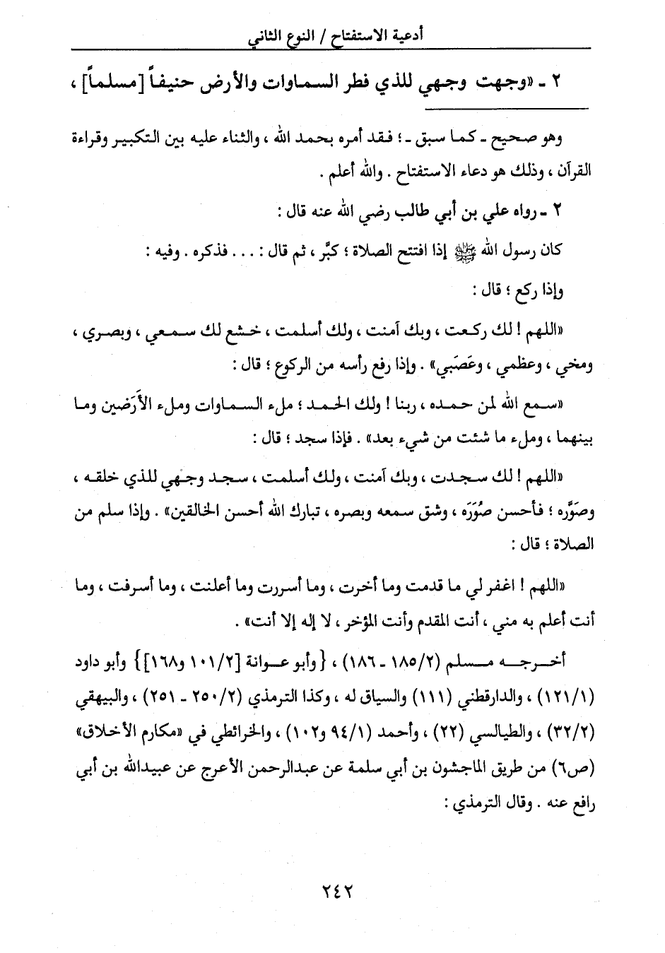 2- " وجهت وجهي للذي فطر السماوات والأرض حنيفاً [مسلماً] ،